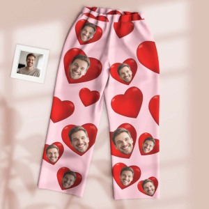 New Custom Pajamas Pants Dark Tone with Embedded Photo Hearts Adjustable Waistband Multiple Color Options Valentine's Day Gift-60% -