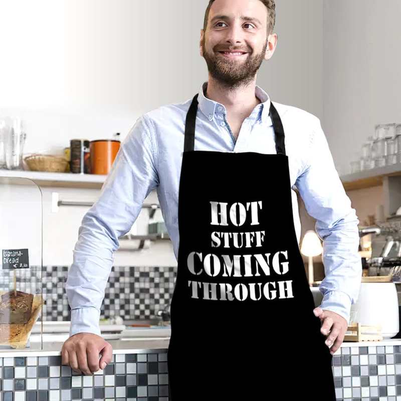 Man Wearing Apron Hot Stuff Coming Through Funny Dad Apron Kitchen Gift Apron for Men