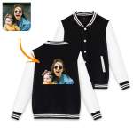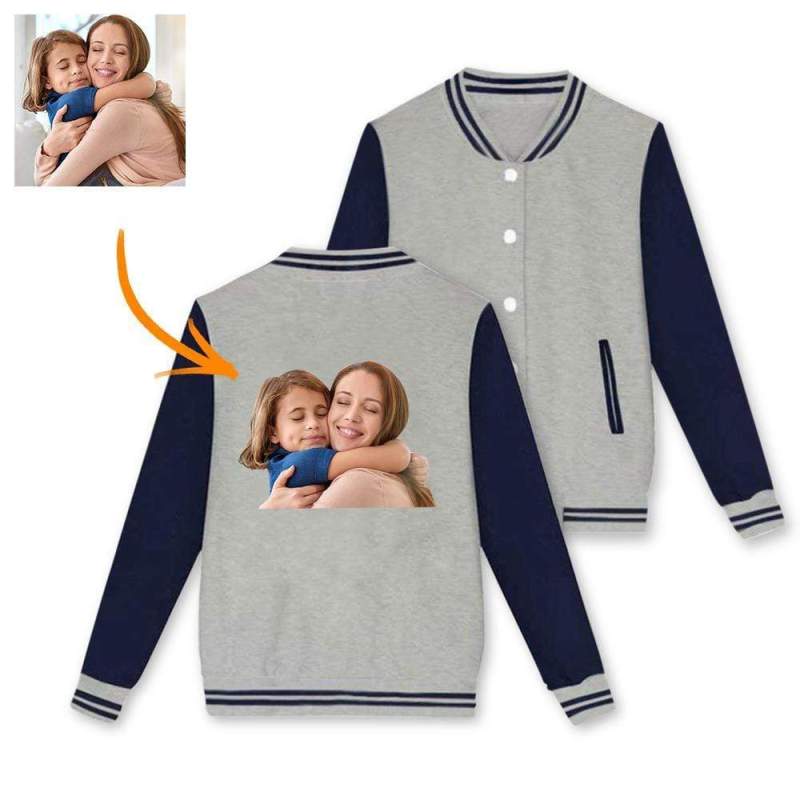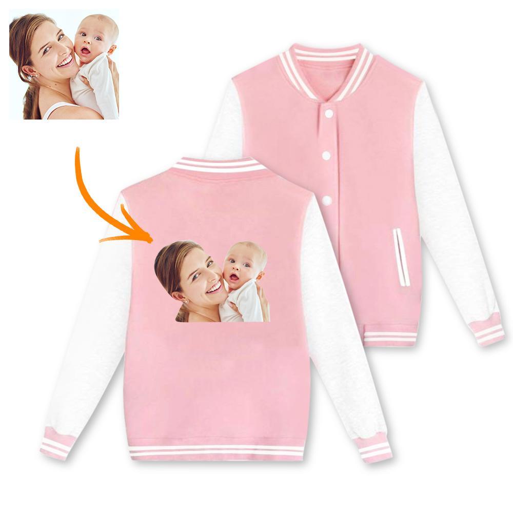 Custom Photo Baseball Jacket Sportswear Gray Black Pink Back - I Love Mom