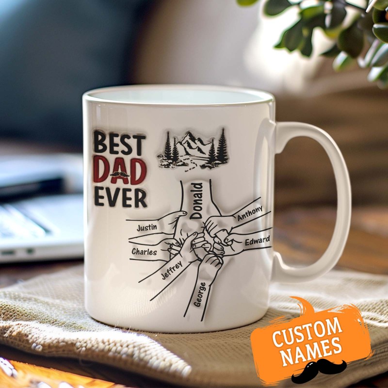 Best Daddy Ever Family Personalized Custom 3D Inflated Effect Printed Mug Father's Day Gift For Dad Grandpa