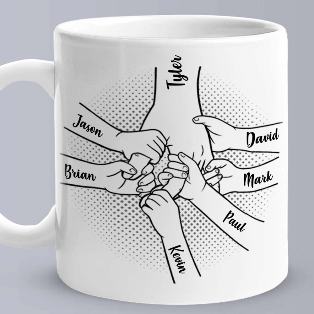 Show your love and appreciation for father or grandpa with a unique design that warms both the hands and the heart. This mug features a touching illustration of fist bump, a heartfelt tribute to the cherished bond between family members.