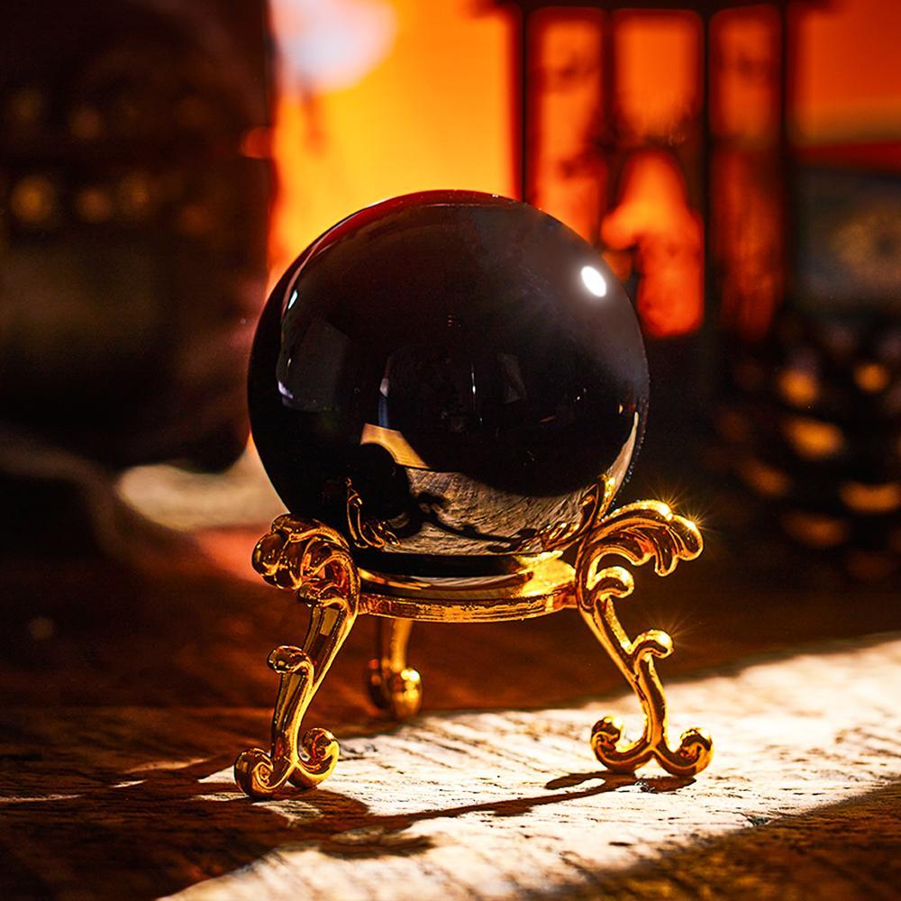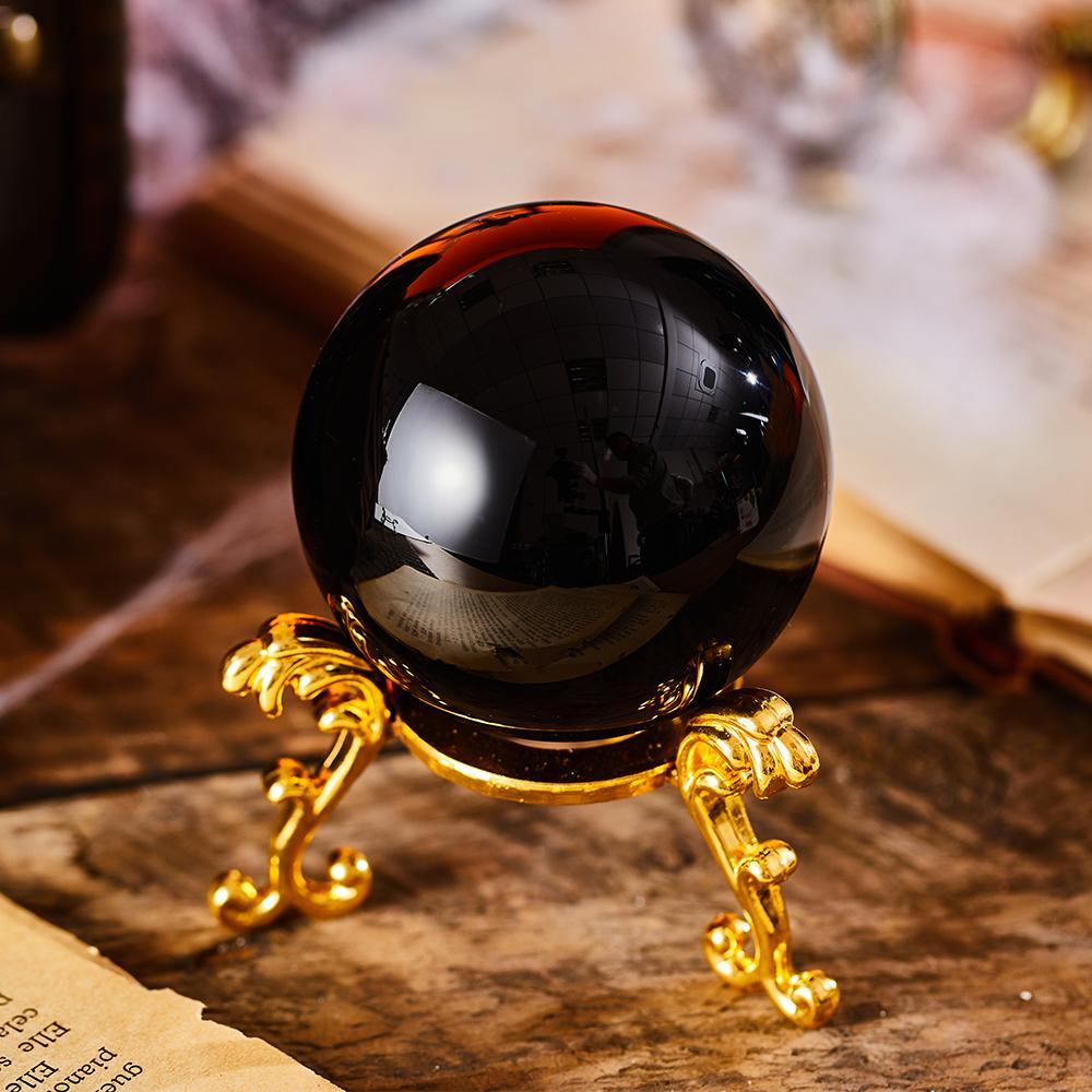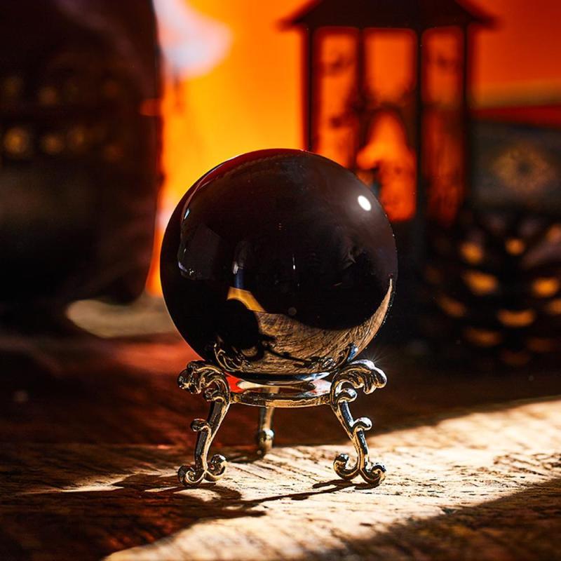 Black Crystal Ball with Stand Obsidian Scrying Crystal Ball for Halloween Home Decor