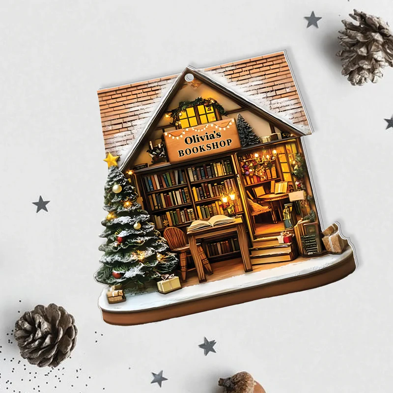 Bookshop Personalized Christmas Acrylic Ornament, Custom Name Holiday Tree Decoration for Book Lovers, Unique Ornament Gift for Readers