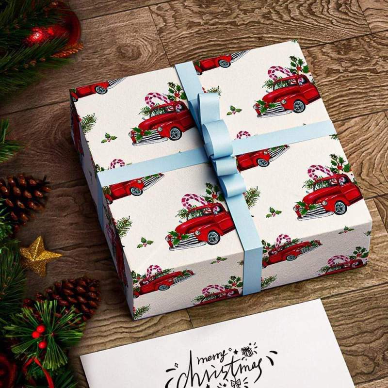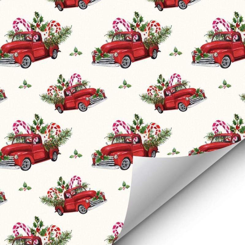 Christmas Gift Wrapping Paper Rolls Truck Pulling Christmas Tree