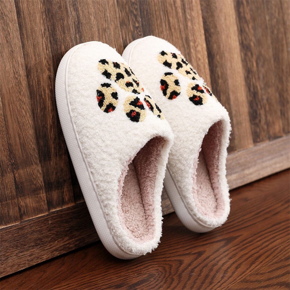 Christmas Slippers Leopard Paw Print Shoes Home Cotton Slippers