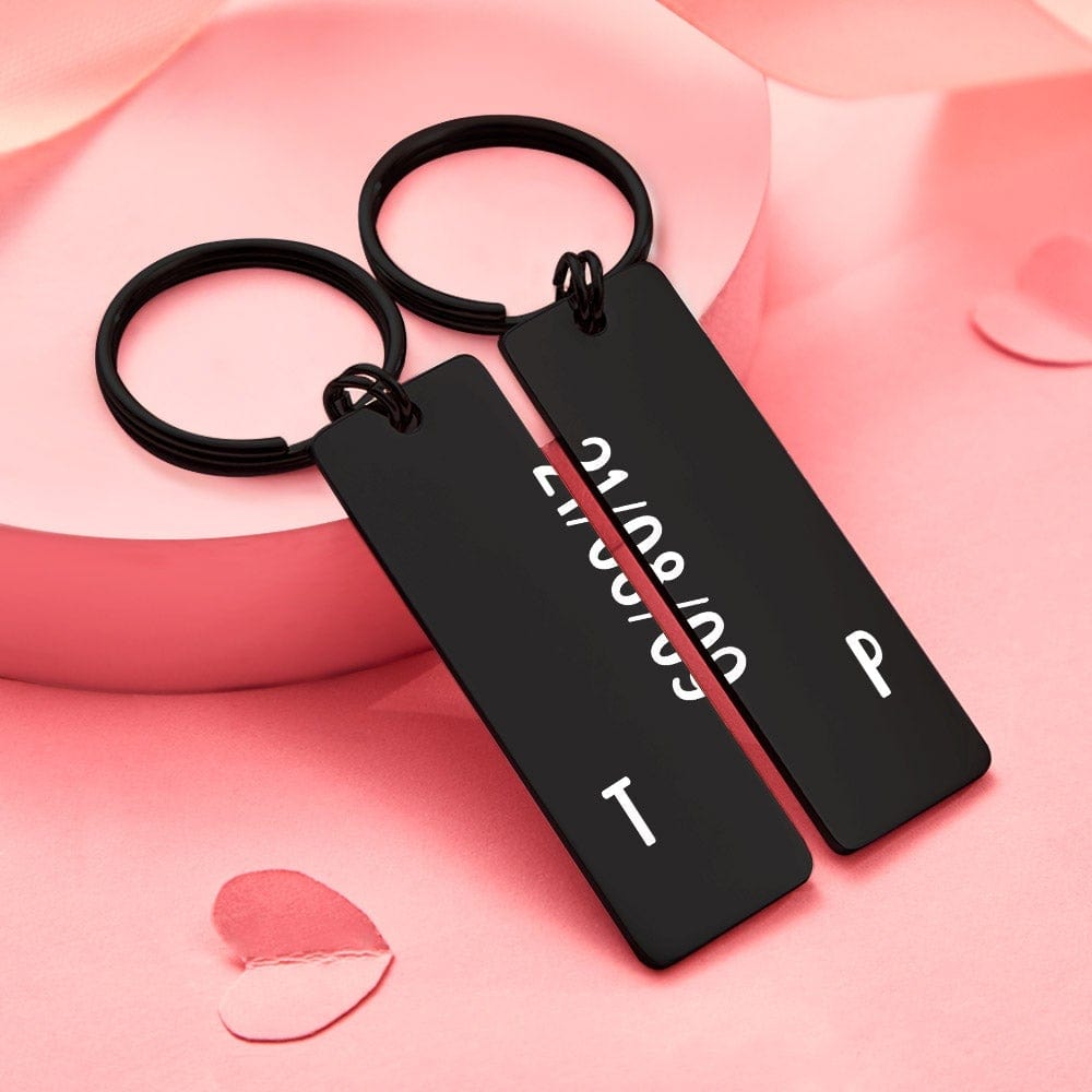 Couple Keychain Set with Date Valentine's Day Gifts Initial Letter