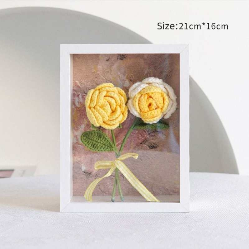 Crochet Bouquets Photo Frame Handmade Knitted Flower Shadowbox Frame Desktop Decoration