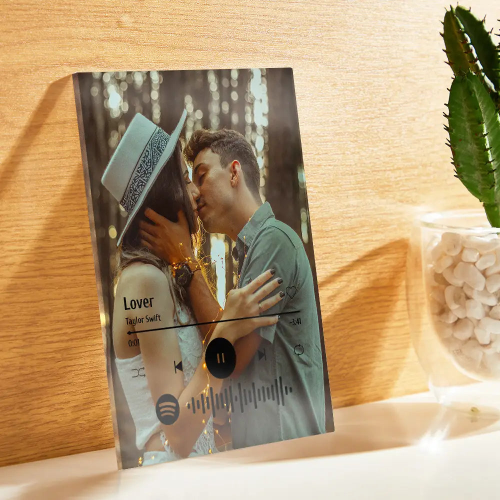 You can engrave the Spotify code of your favorite song on the acrylic music plaque so that you can scan the Spotify Code to listen to your favorite song anytime, anywhere.