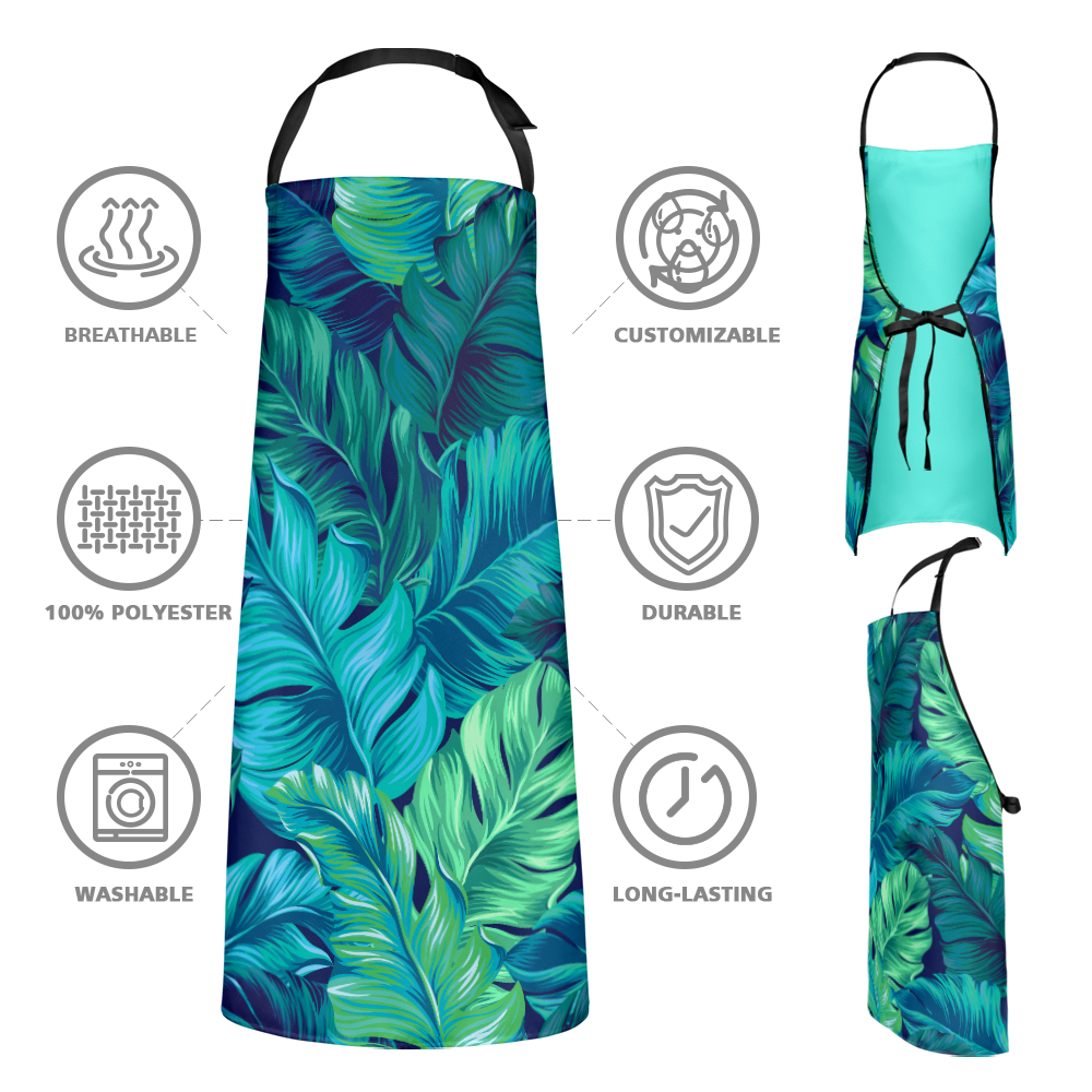 Custom Apron Funny Apron Emerald Palm Jungle Leaves Tropical Gifts for Mom