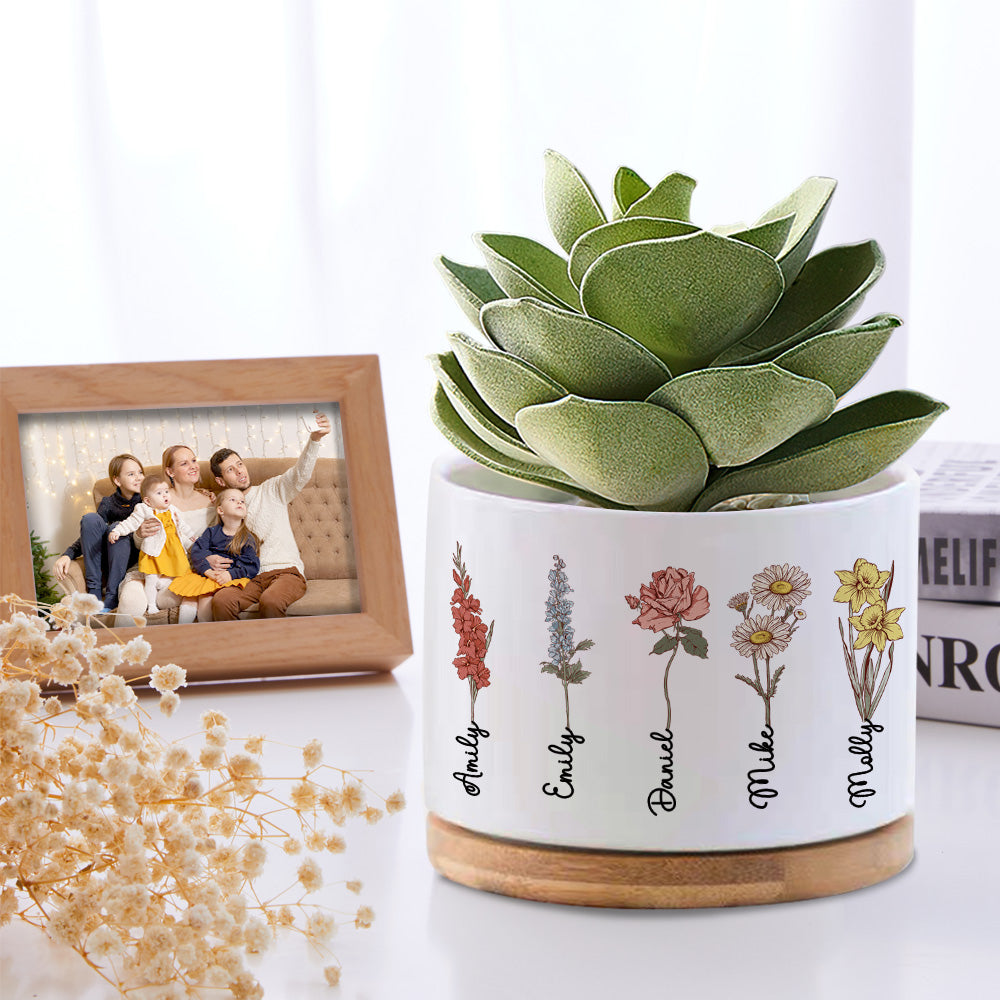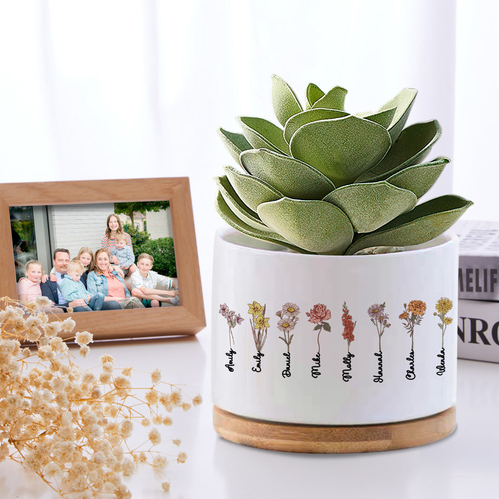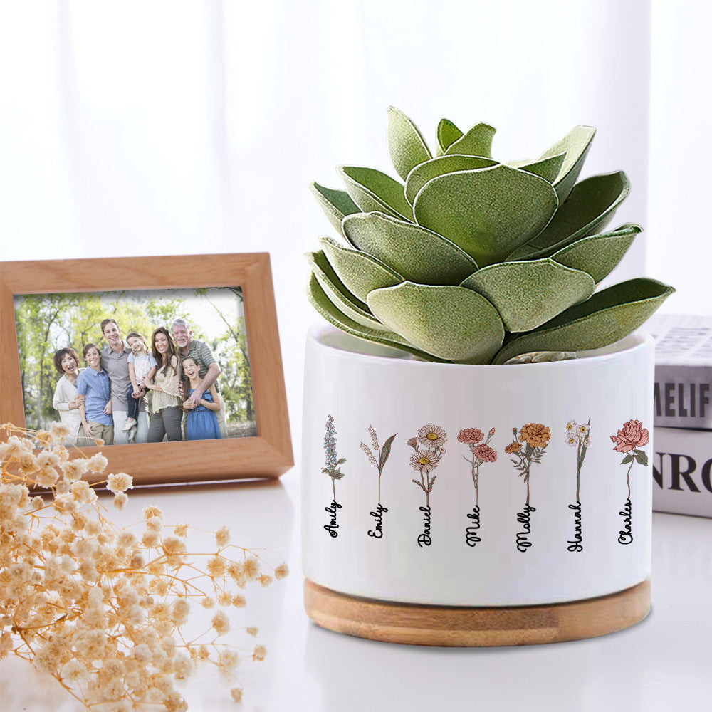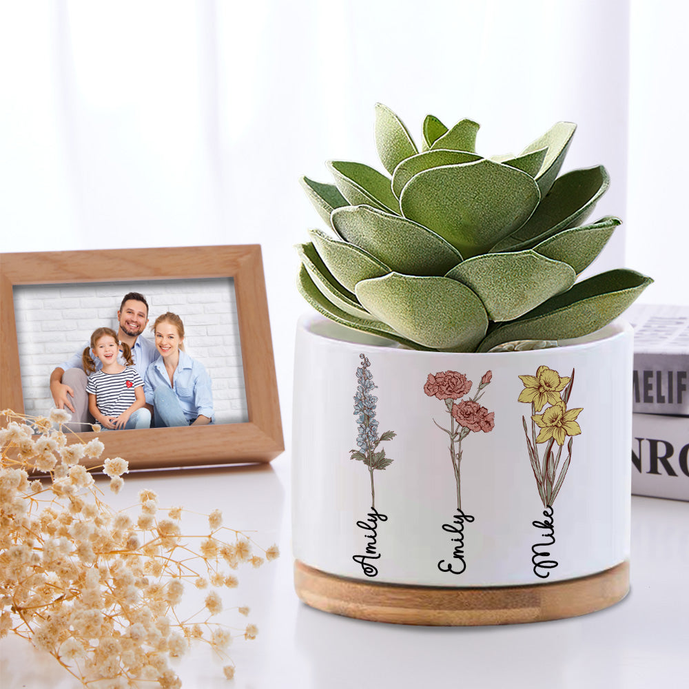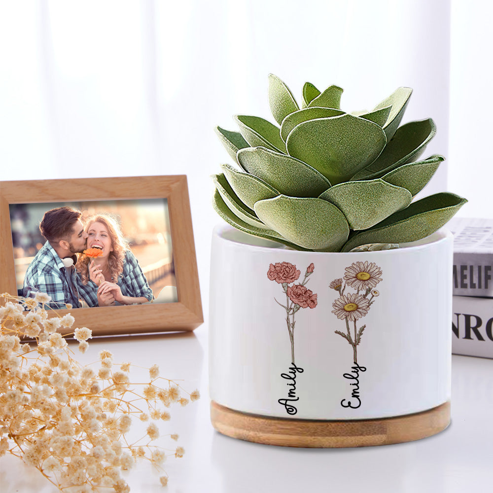 Custom Birth Month Flowers Planter Pot Personalized Name Ceramic Succulent Plant Pot