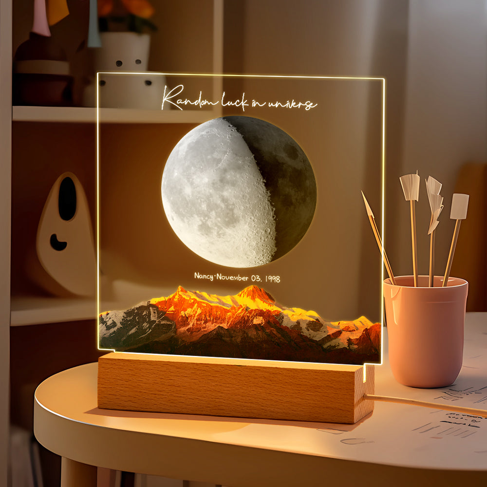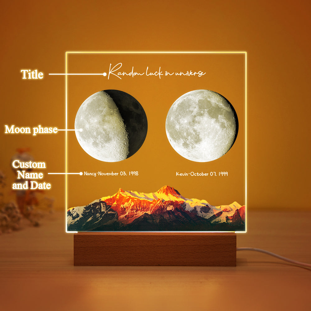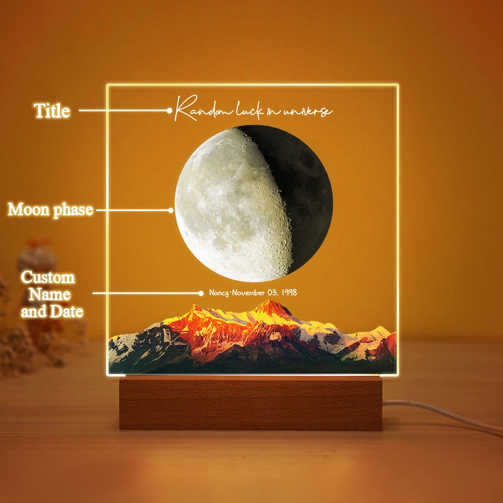 Custom Birth Moon Night Light Personalized Moon Phases LED Light for Birthday Anniversary Gifts