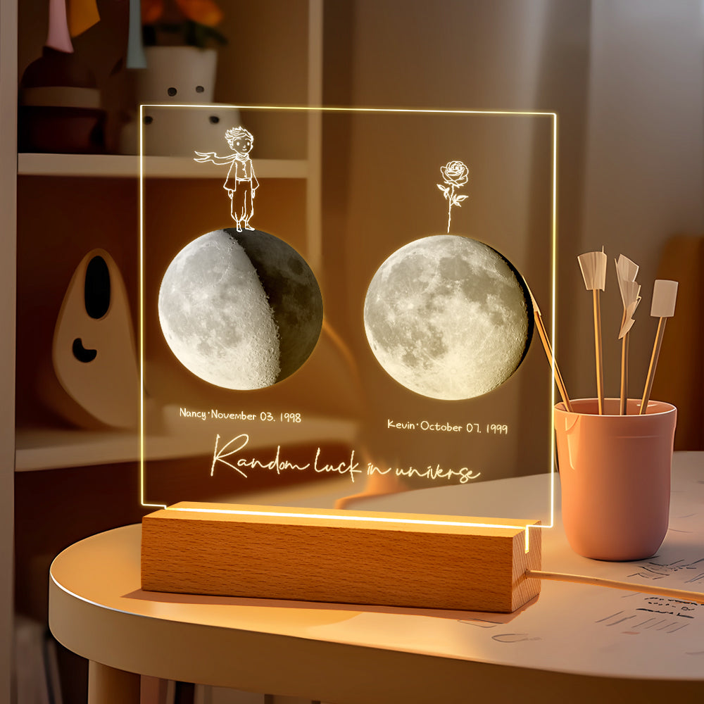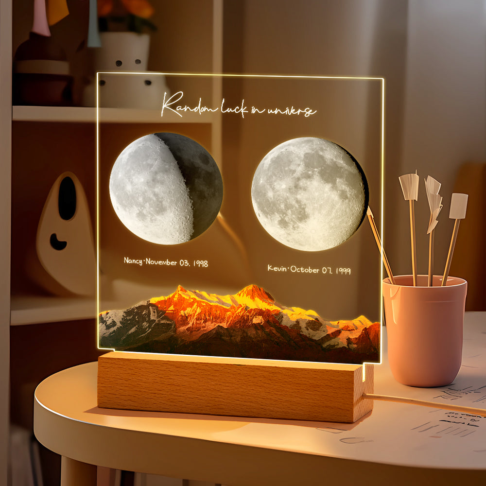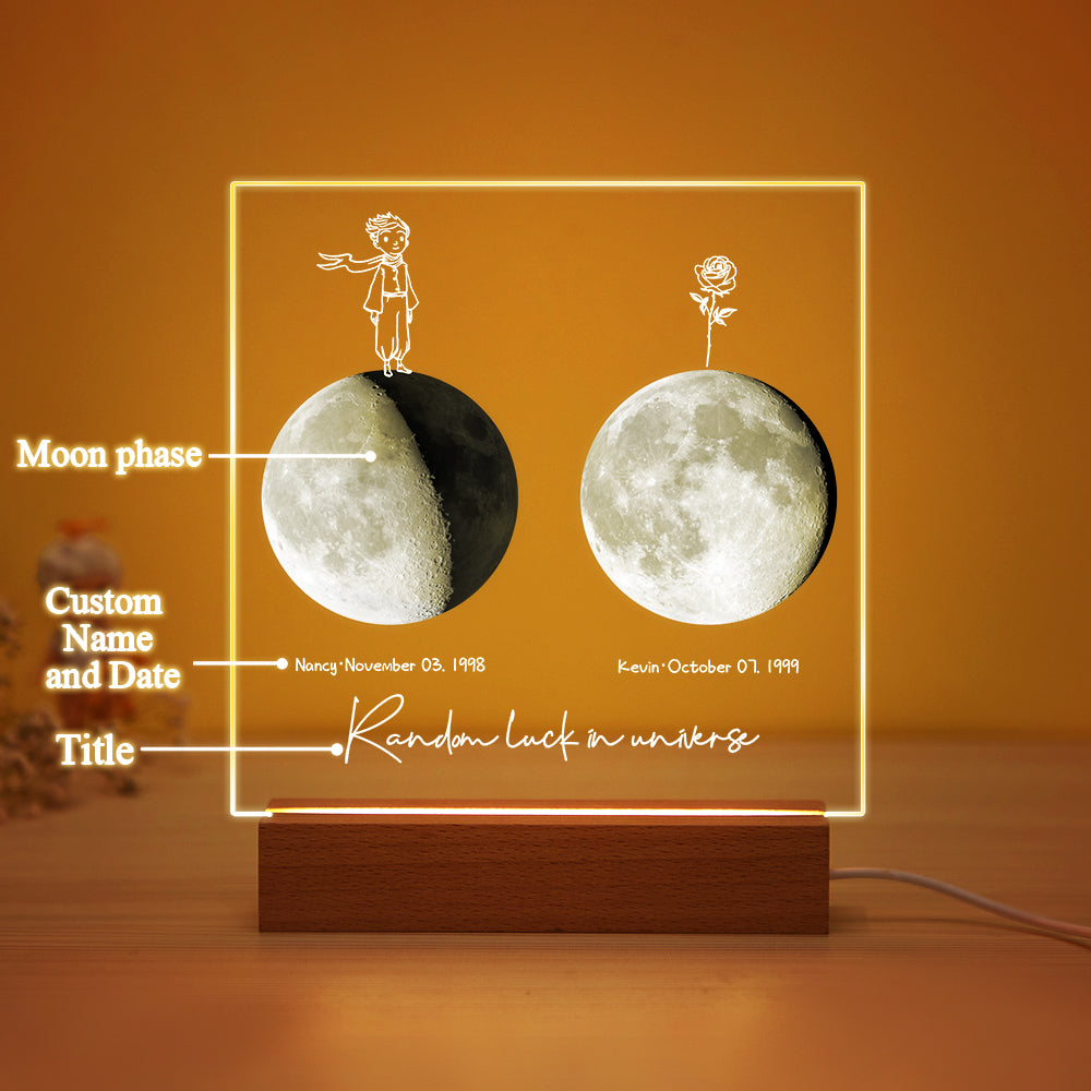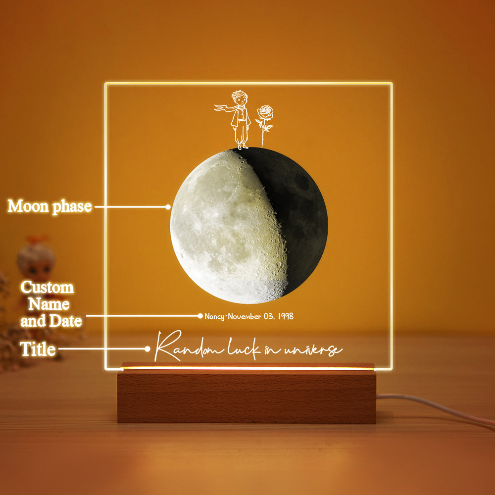 Custom Birth Moon Night Light Personalized Moon Phases LED Light for Birthday Anniversary Gifts