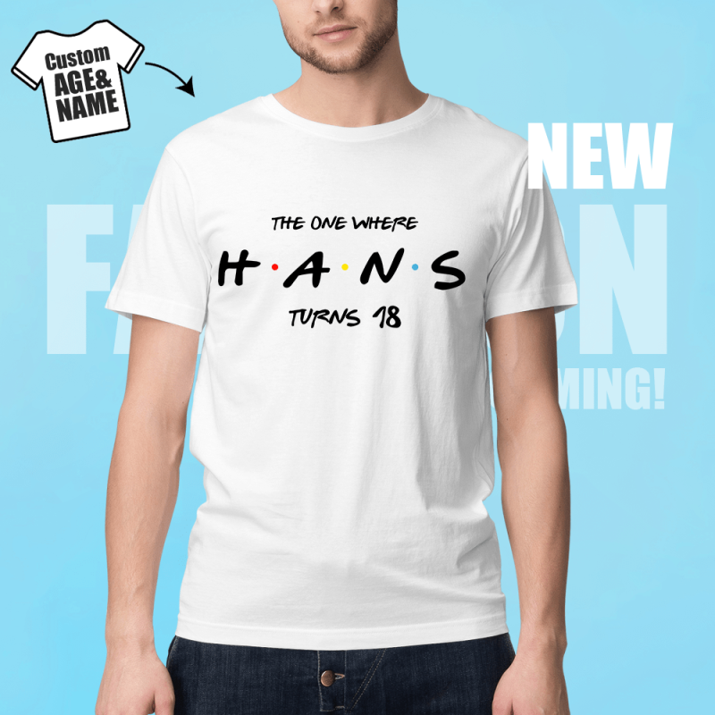 This personalized t-shirt will make the Birthday person's day. A fun gift to send to your son, daughter, brother, sister, nephew, niece, cousin, best friend, the coworker who are a true Friends fan in your life. Perfect birthday, graduation, Christmas, stocking stuffer or holiday gift.