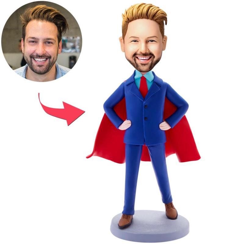 Custom Bobblehead Blue Suit Super Business Man With Engraved Text