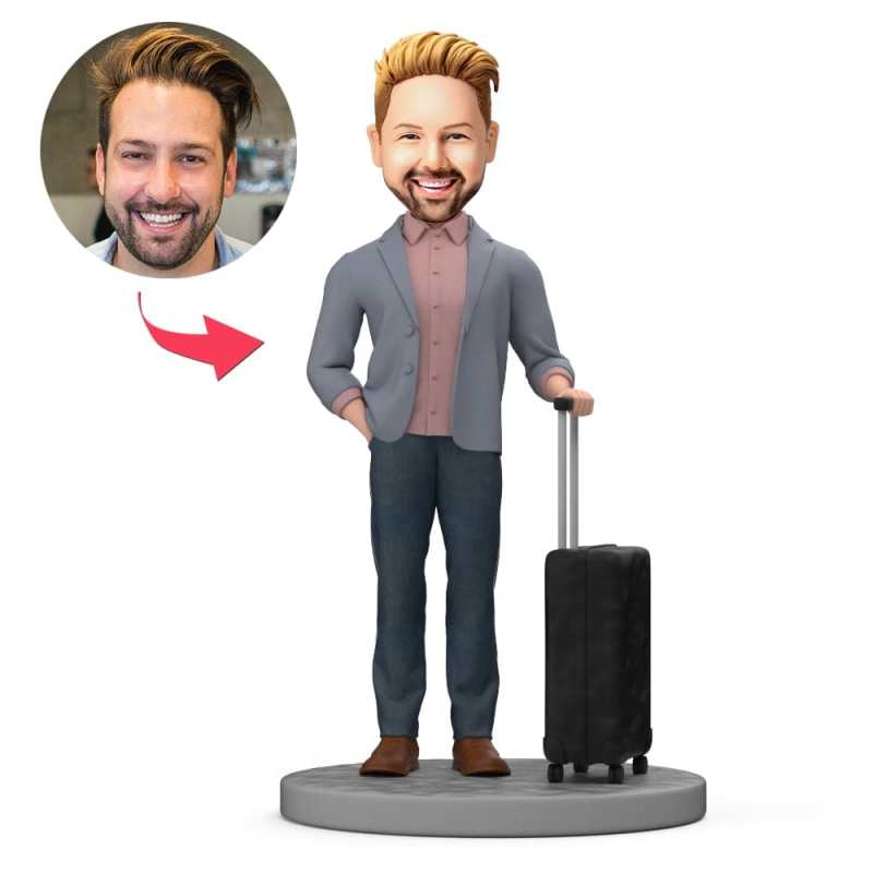 Custom Bobblehead Business Man With Suitcases Ready for Business Trip
