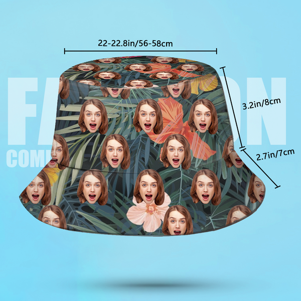 Custom Bucket Hat Personalize Face Hawaiian Style Unisex Summer Cap Gift for Lover Custom 2 Face