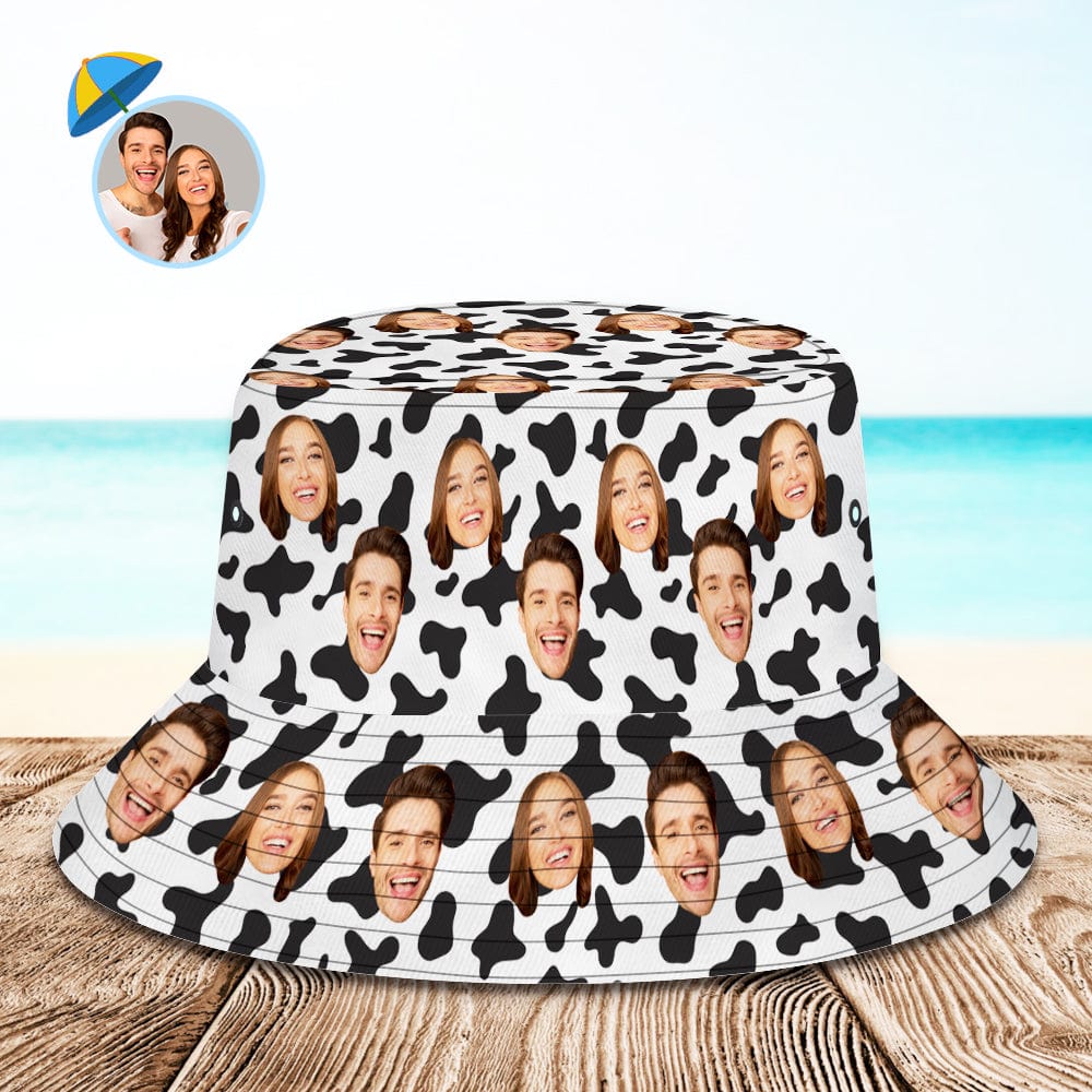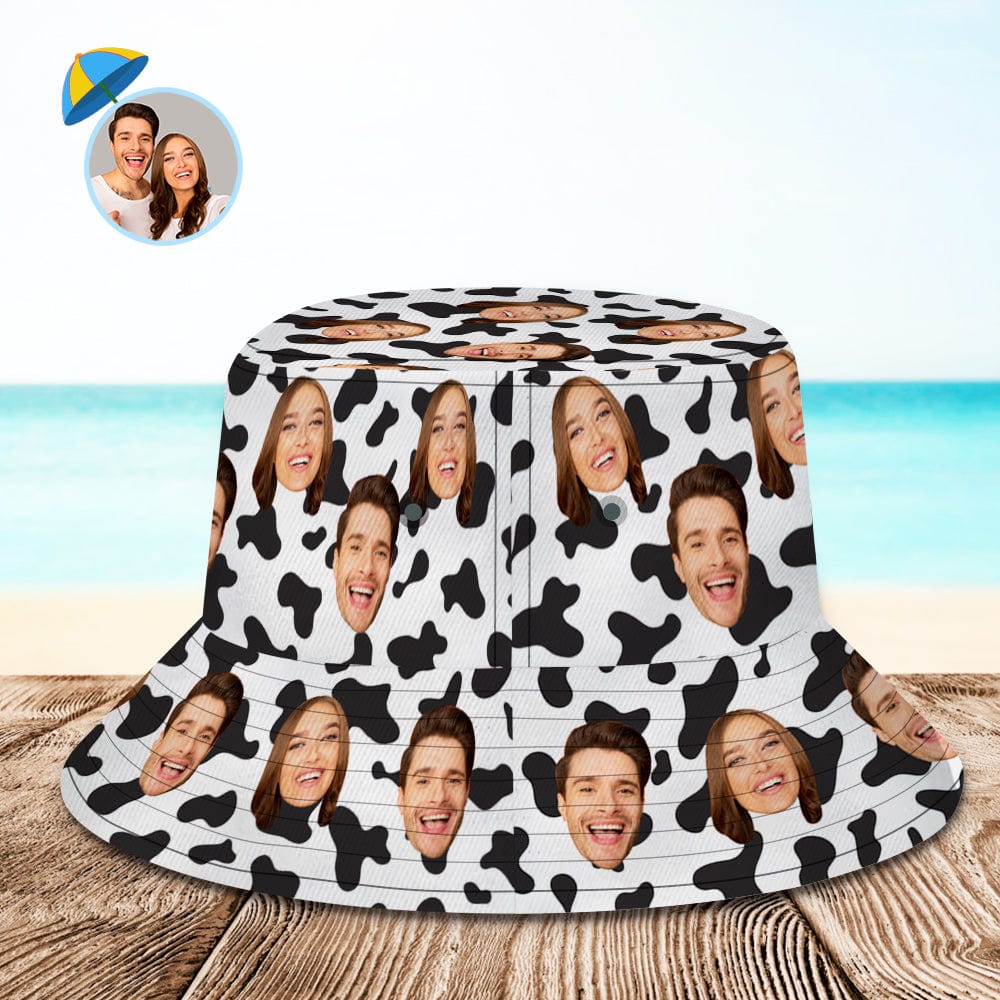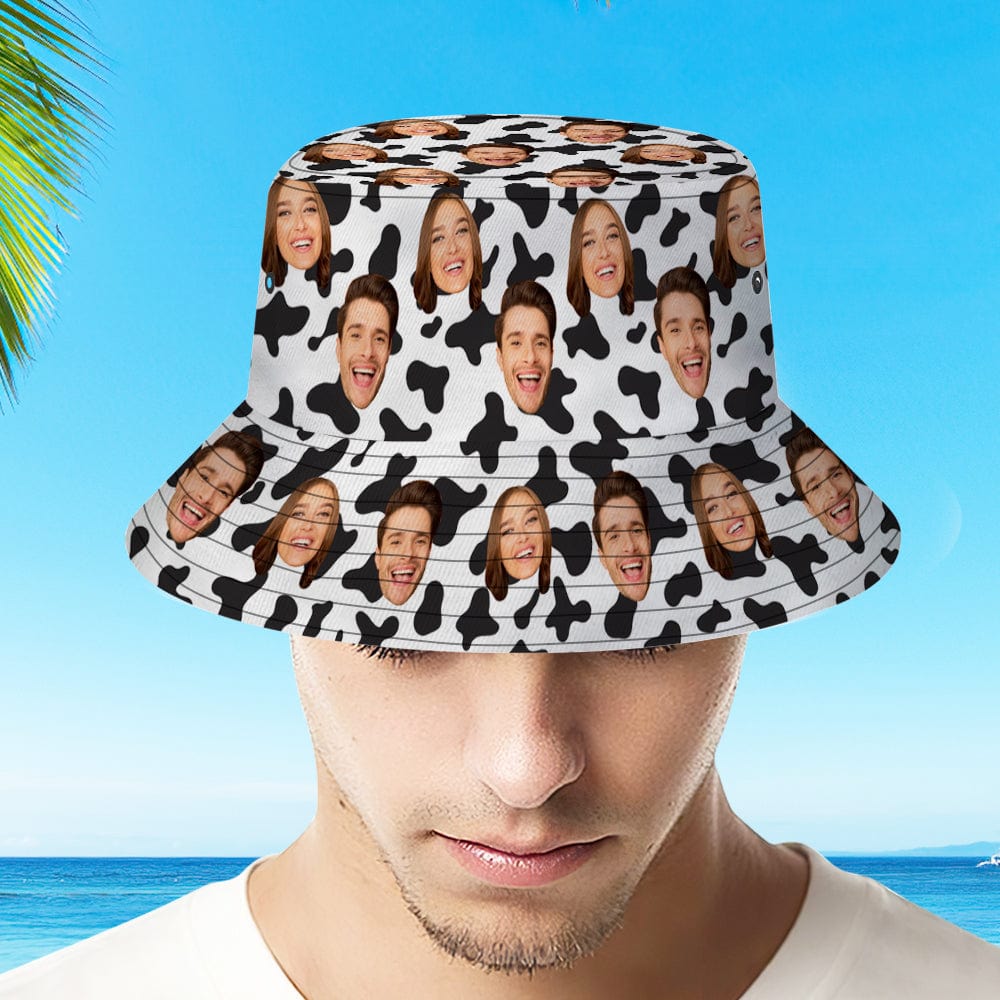 Custom Bucket Hat Personalized Face Cow Print Summer Unisex Outdoor Bucket Hat