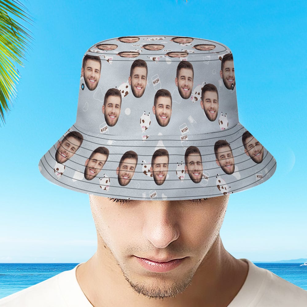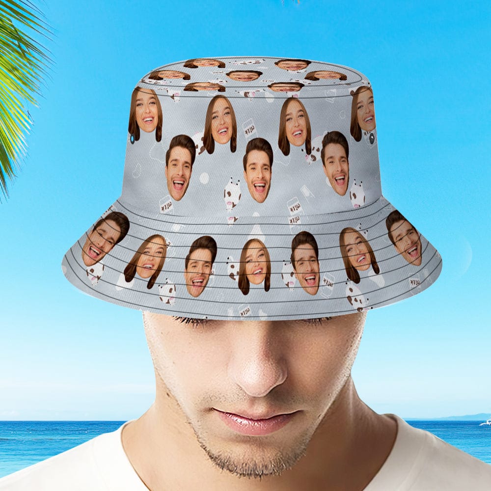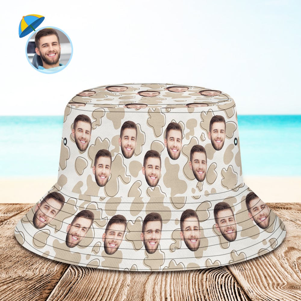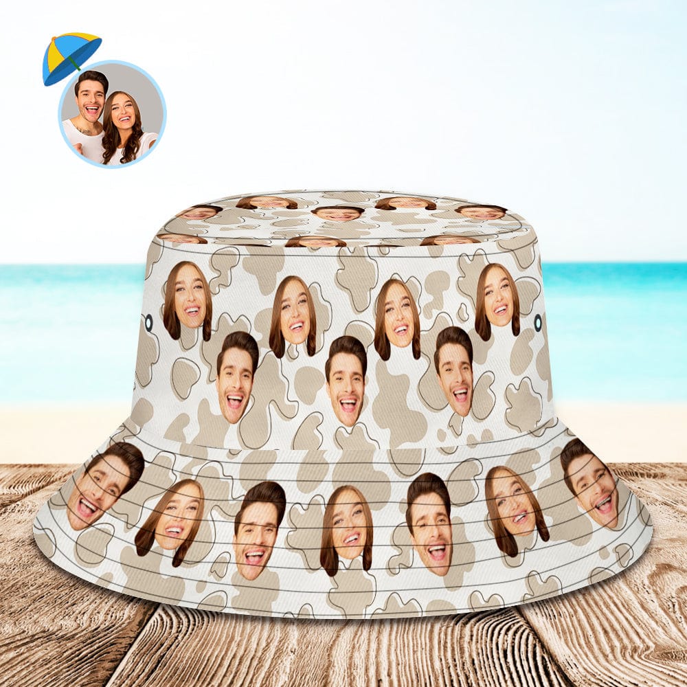 Custom Bucket Hat Personalized Face Cow Print Summer Unisex Outdoor Bucket Hat