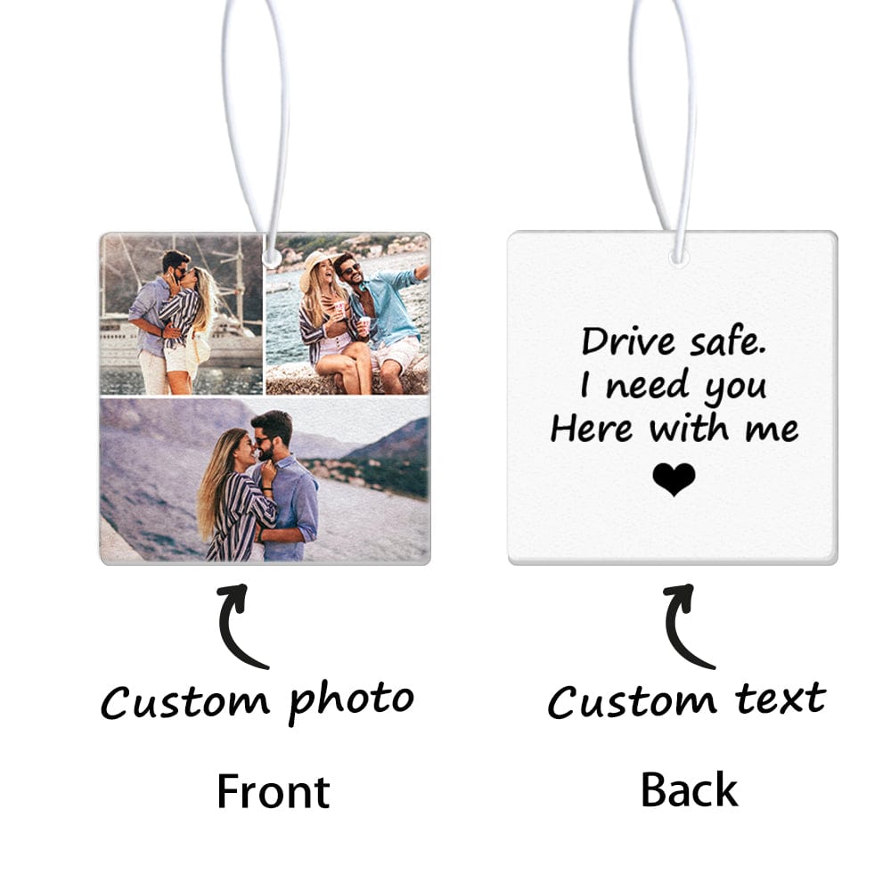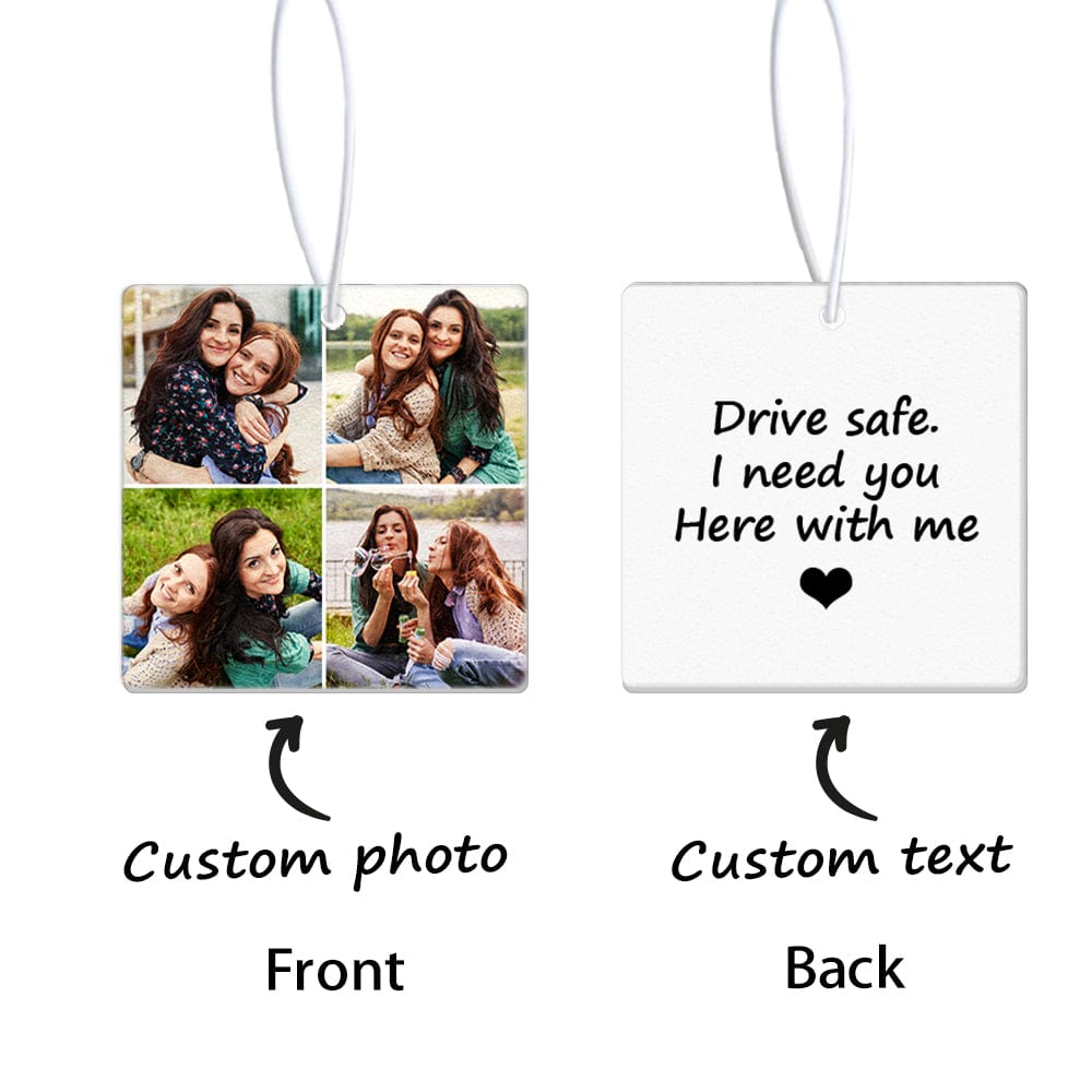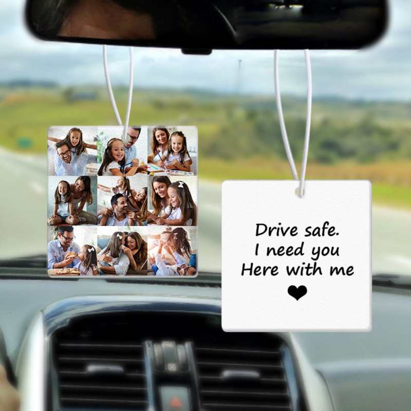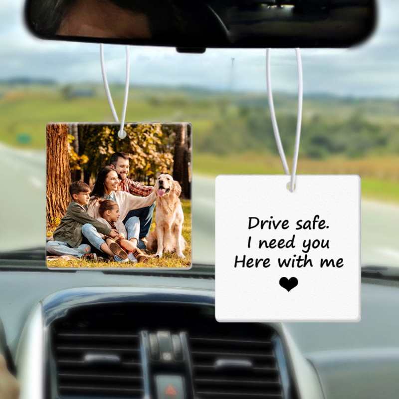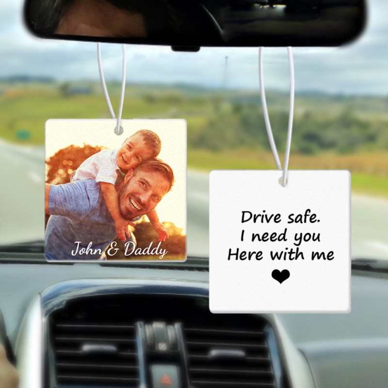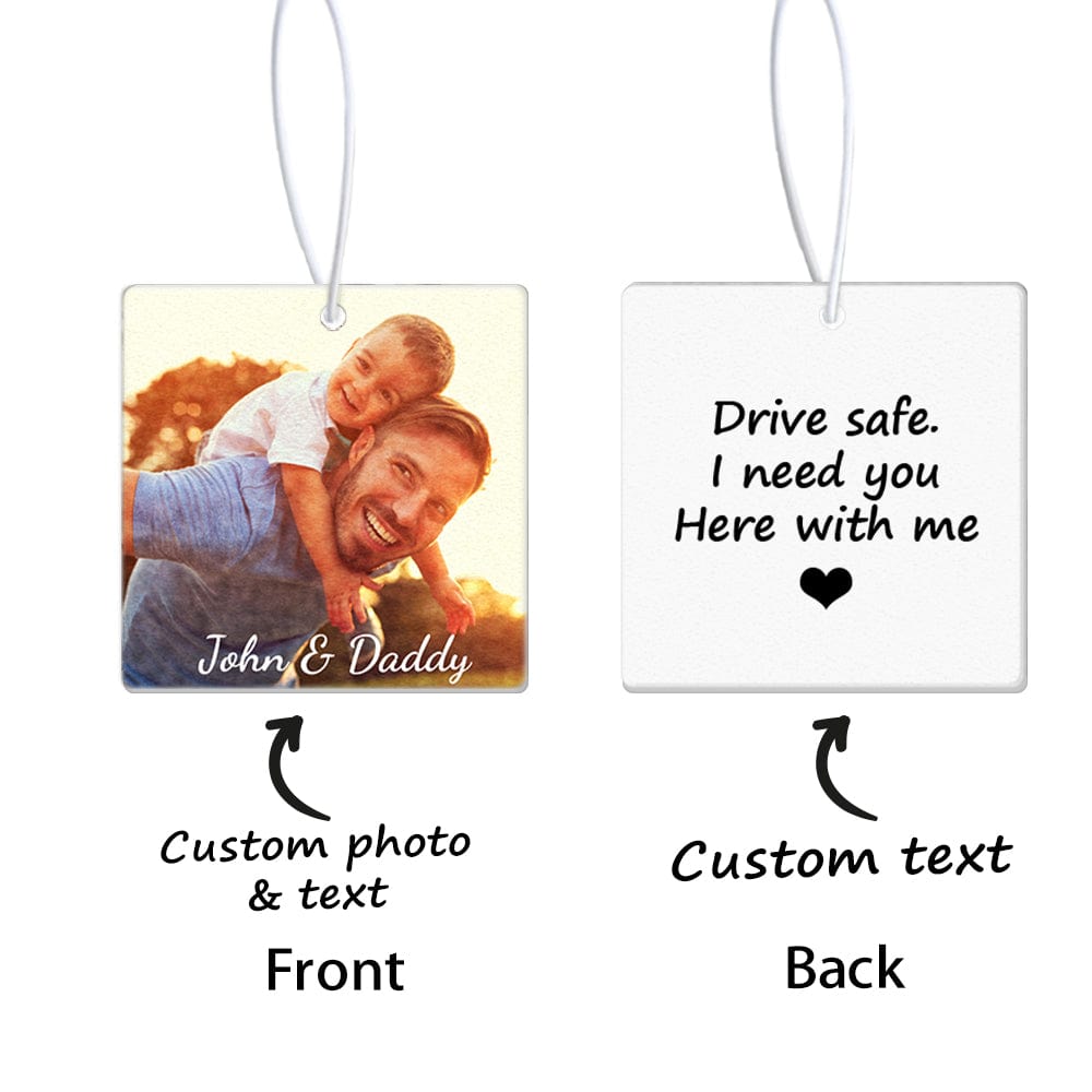 Father's Day Gifts Custom Car Air Freshener with Photo and Text Rearview Mirror Ornament Drive Safe Gifts for Him
