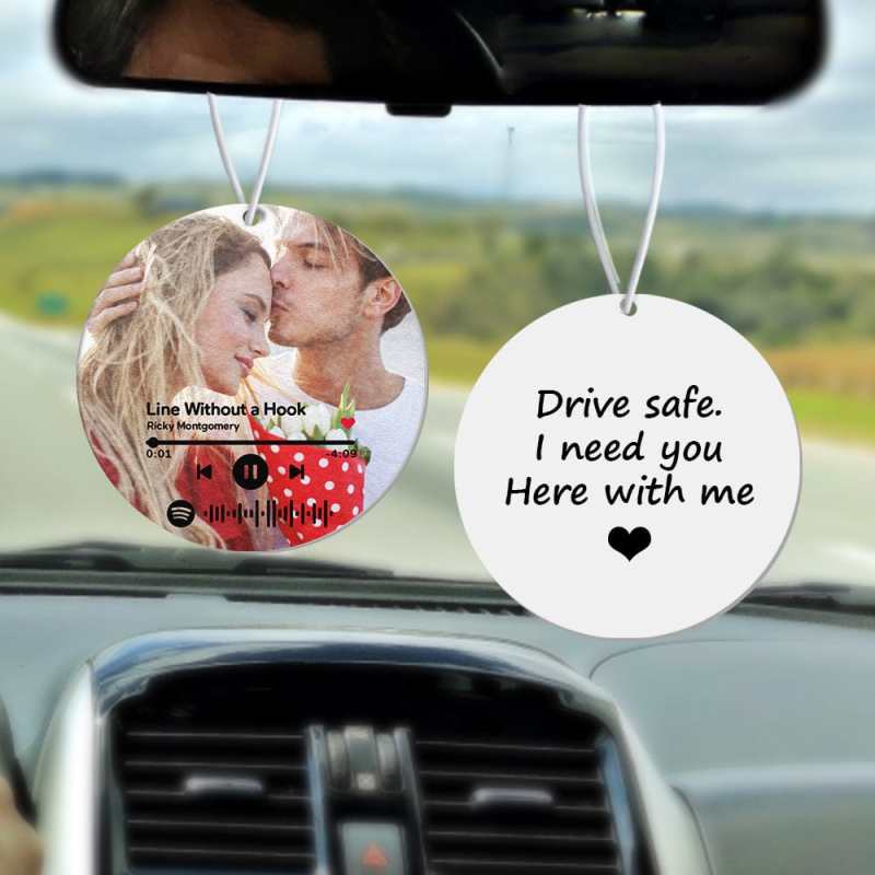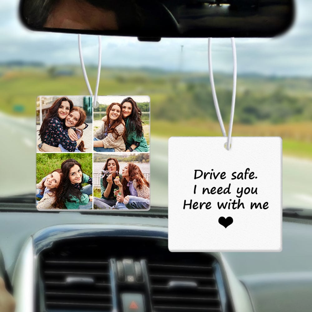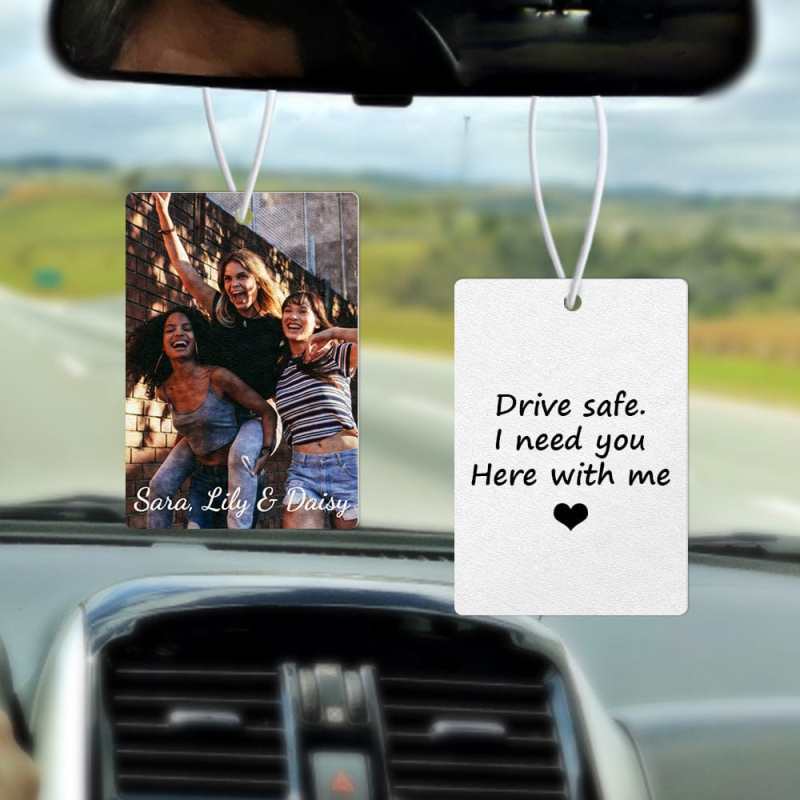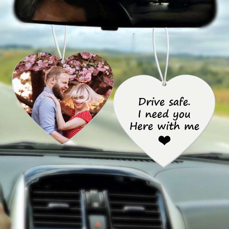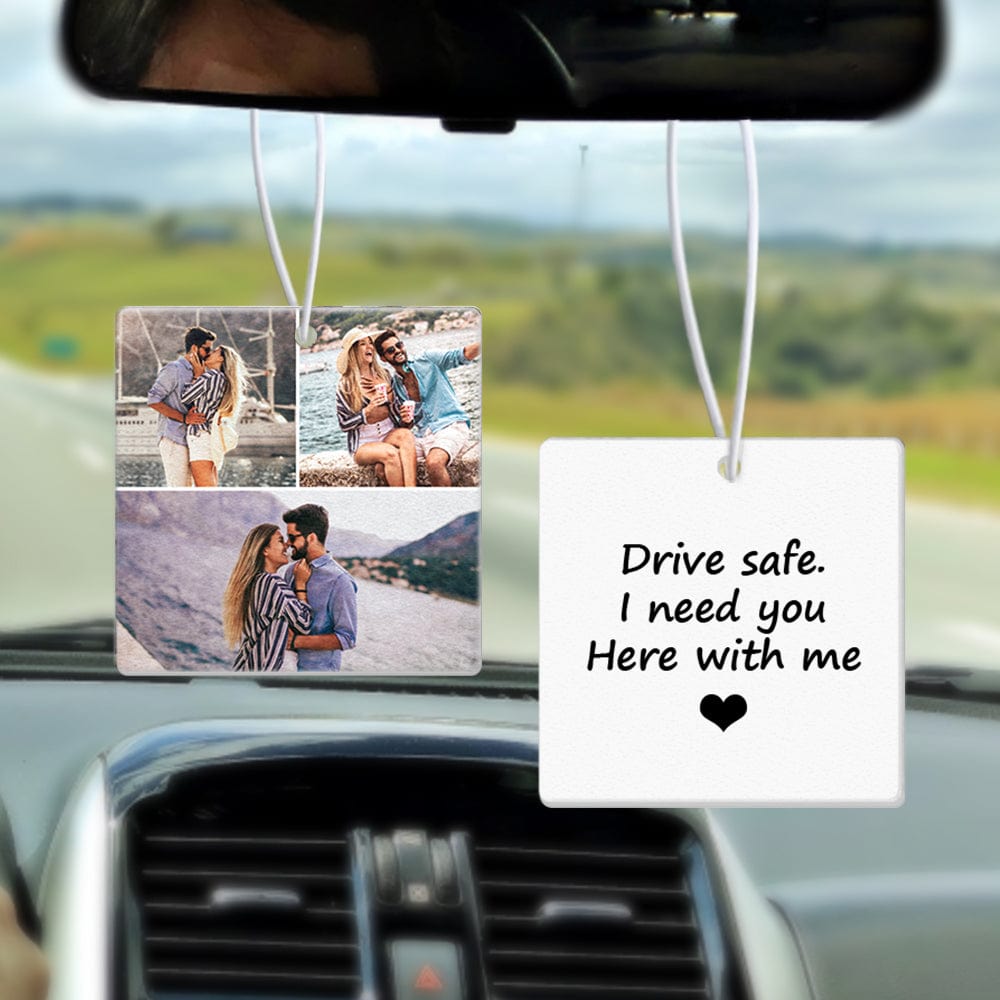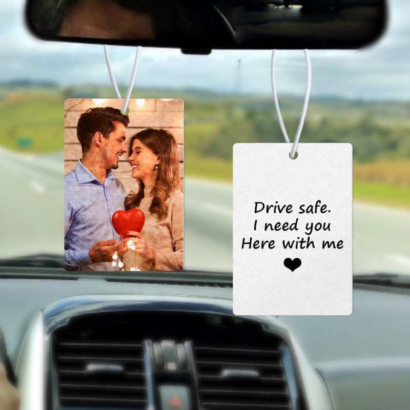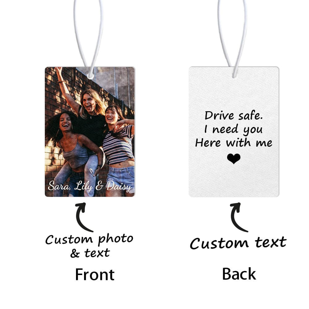 Father's Day Gifts Custom Car Air Freshener with Photo and Text Rearview Mirror Ornament Drive Safe Gifts for Him