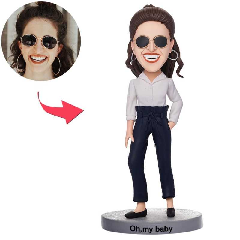 Our Casual Beautiful Girl Custom Bobblehead comes with a 365-day warranty, giving you peace of mind in your purchase. Made from high-quality polymer clay, this Custom Bobblehead is built to last and makes a great addition to any collection.