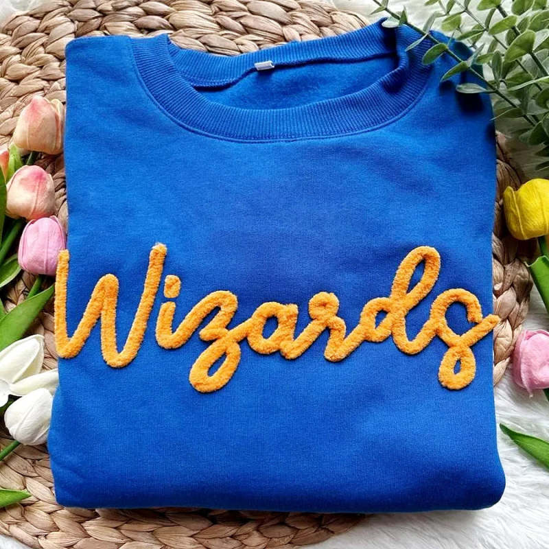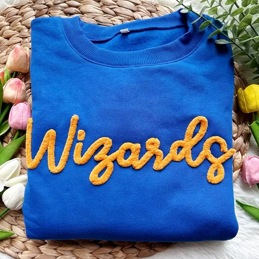 Our Custom Chenille Yarn Hand Embroidery Game Day Sweatshirt elevates spirit wear into wearable art. Skilled artisans hand-stitch plush chenille yarn to create raised letters, mascots, numbers, or monograms with rich texture and depth you can feel. Each piece is customized to your team colors and text, then finished with a durable backing so the design stands up to regular wear. The result is a premium, textured crewneck that's perfect for fans, parents, coaches, and alumni who want a vintage, varsity look with handcrafted quality.