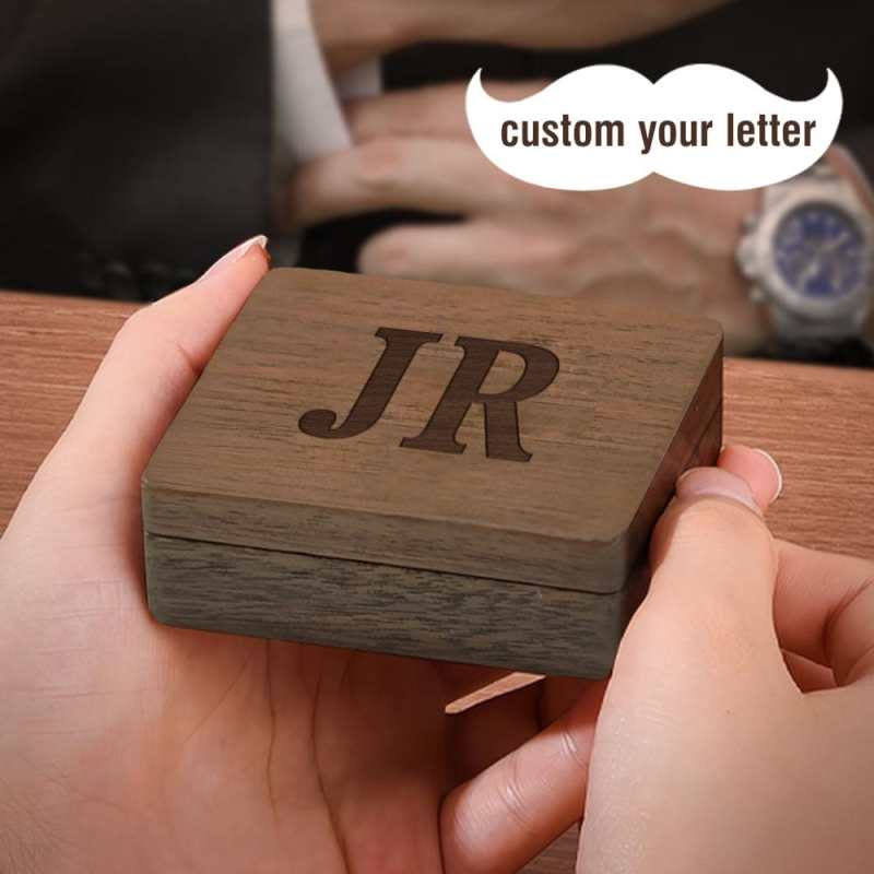 Custom Cufflinks Set With Wooden Box Personalized Gifts For Boyfriend