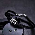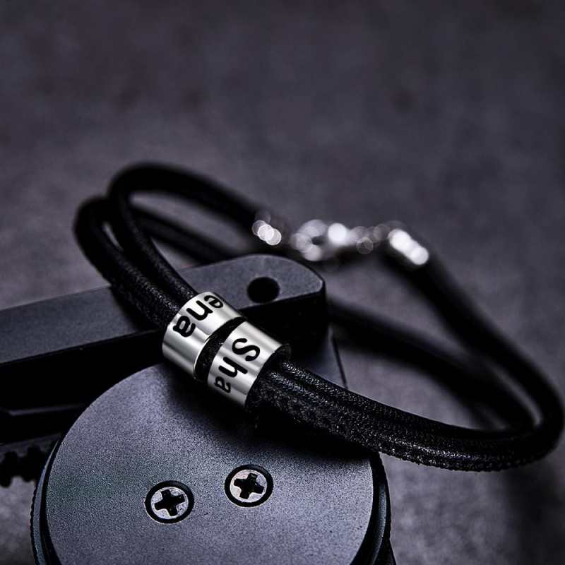 Custom Engraved Bead Bracelet Men Braided Black Leather Gifts