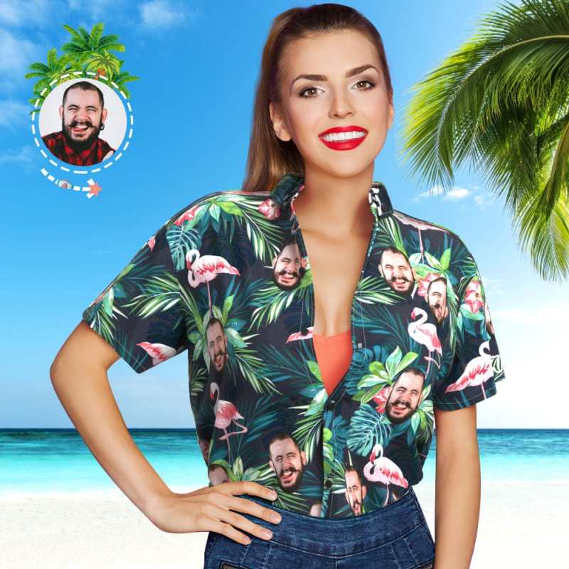 Custom Hawaiian Shirt with Dog on It Flamingo Flowers And Leaves Shirt for Pet Owner