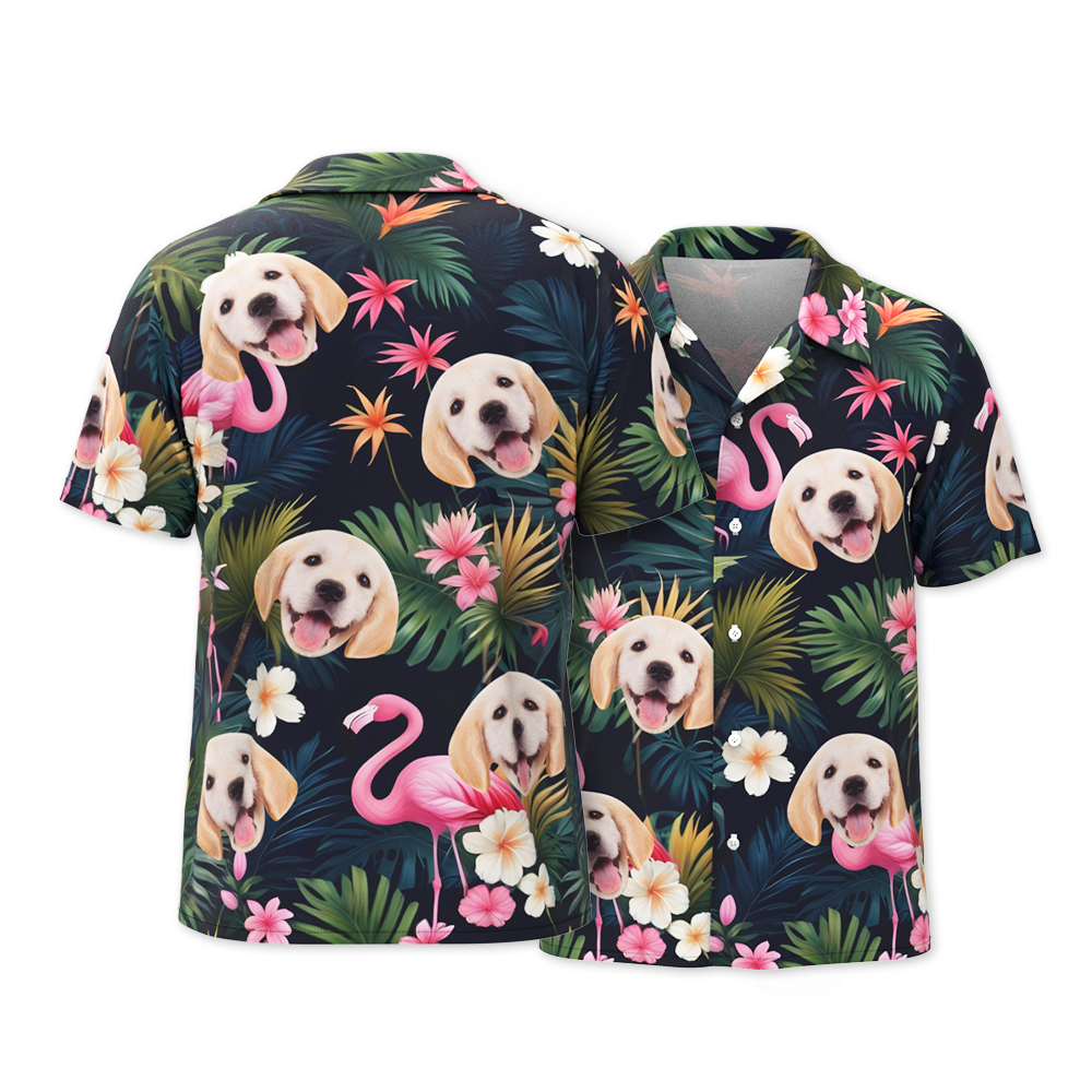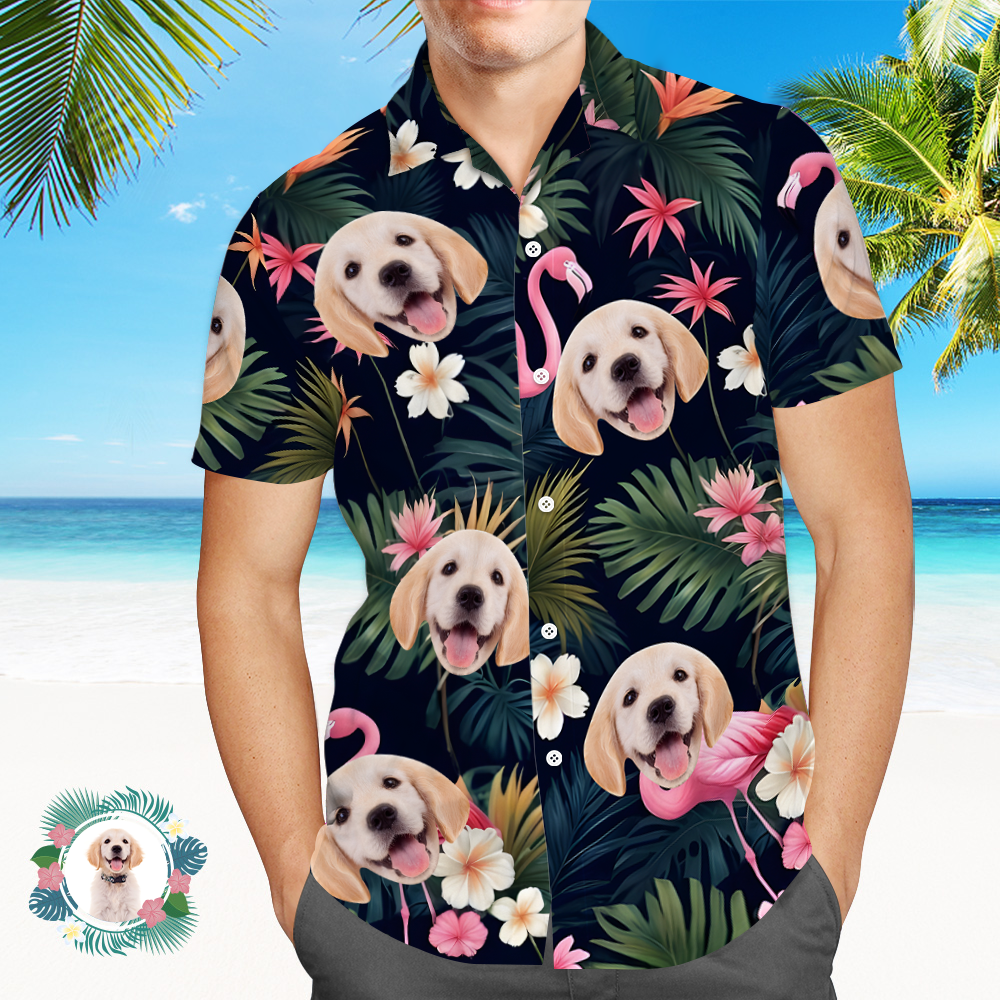 Custom Face All Over Print Men's Hawaiian Shirt Flamingo Flower and Leaves Gift for Him