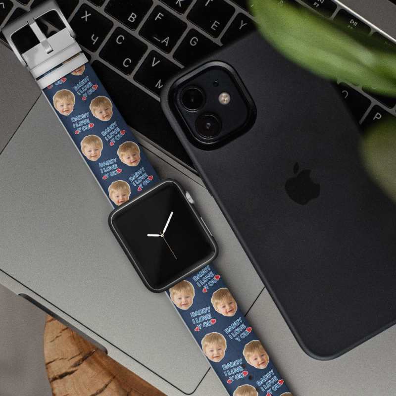 Custom Face Apple Silicone Watch Band Personalized Daddy I Love You Watch Band Gift for Dad