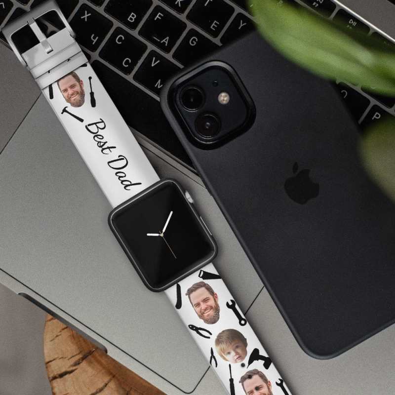 Custom Face Apple Silicone Watch Band Personalized Tool Pattern Watch Band Gift for Dad