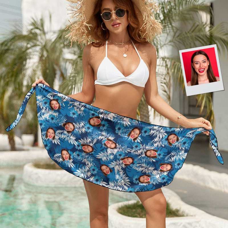 Custom Face Beach Wrap Blue Hawaiian Style Women Short Sarongs Gift for Her