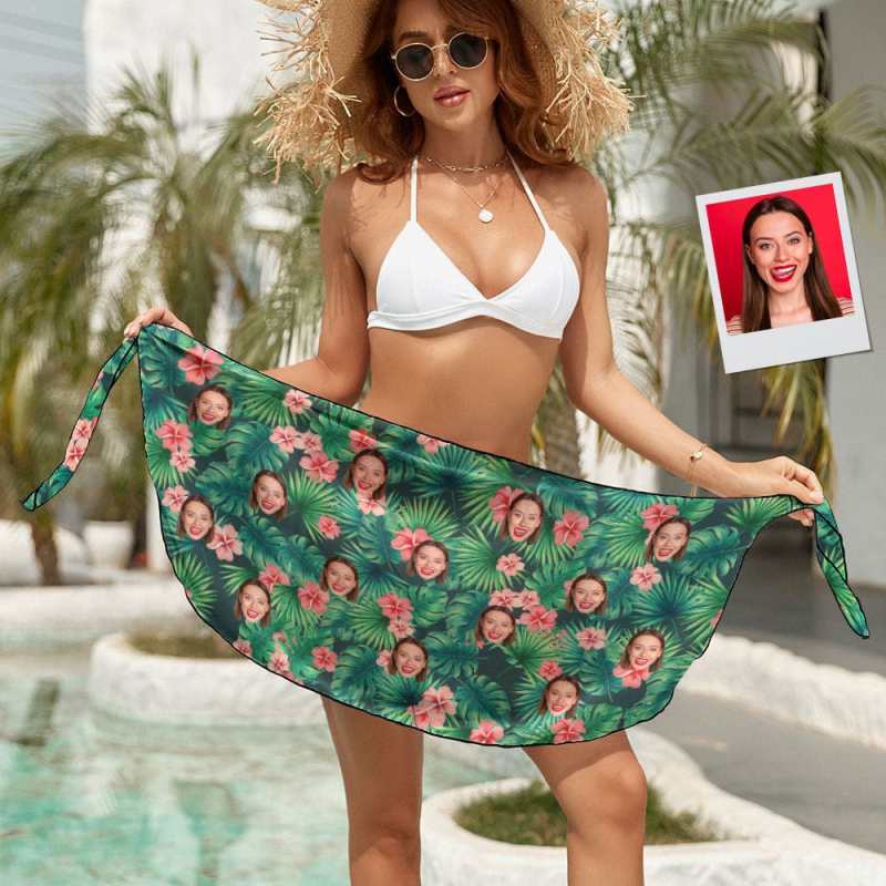 Custom Face Beach Wrap Hawaiian Style Women Short Sarongs Gift for Her