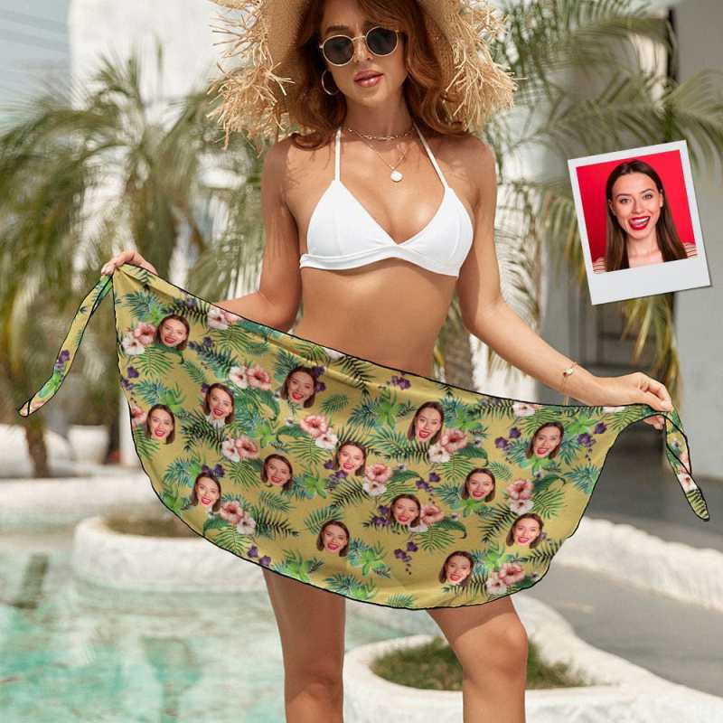 Custom Face Beach Wrap Yellow Hawaiian Style Women Short Sarongs Gift for Her