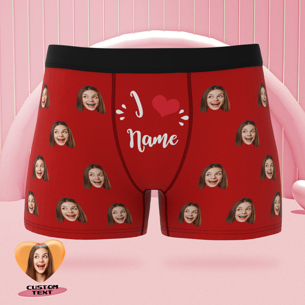 Custom Face Boxer Briefs I Love Name Personalized Naughty Valentine's Day Gift for Him