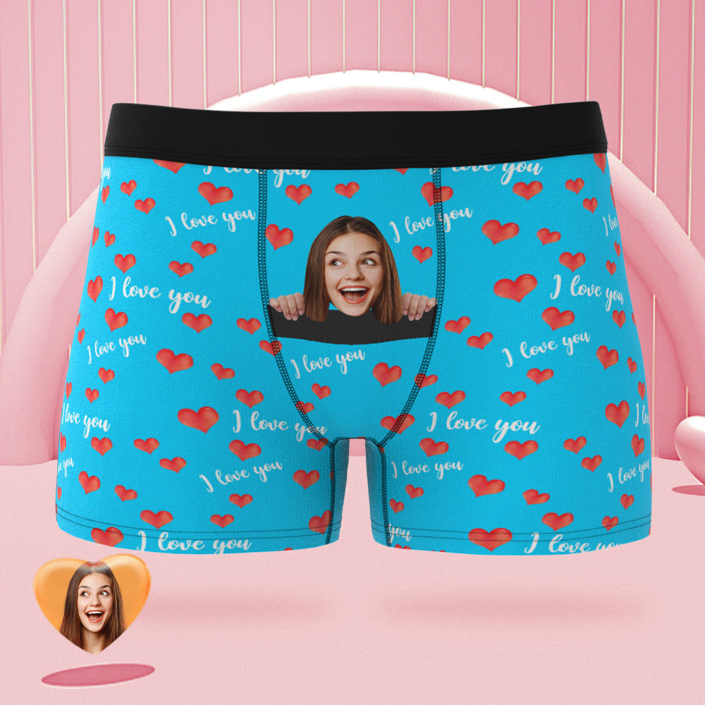Custom Face Boxer Briefs I Love You with All My Heart Personalized Naughty Valentine's Day Gift for Him