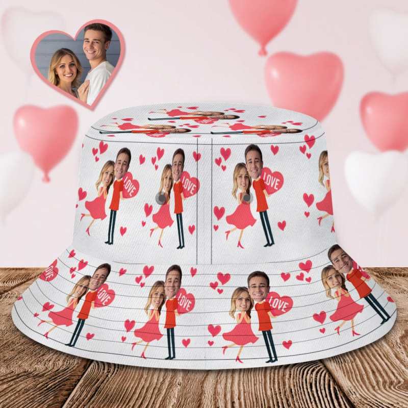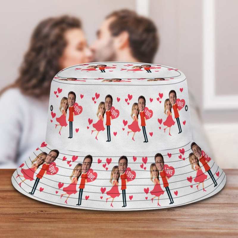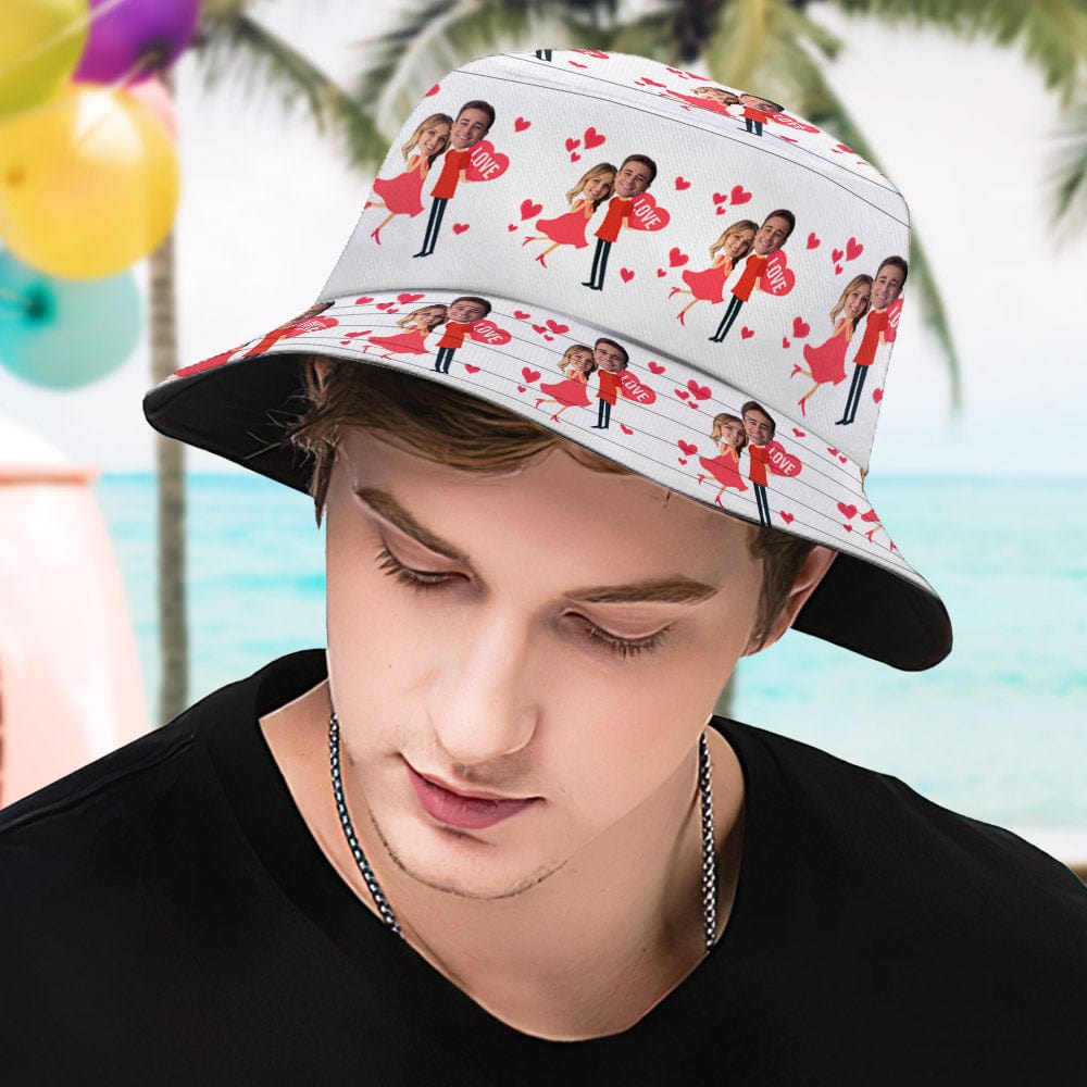 Custom Face Bucket Hat Personalized Couples Fisherman Cap for Valentine Gifts