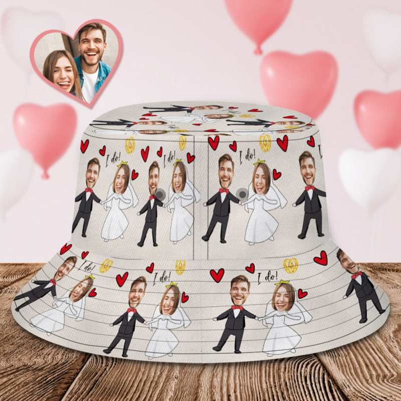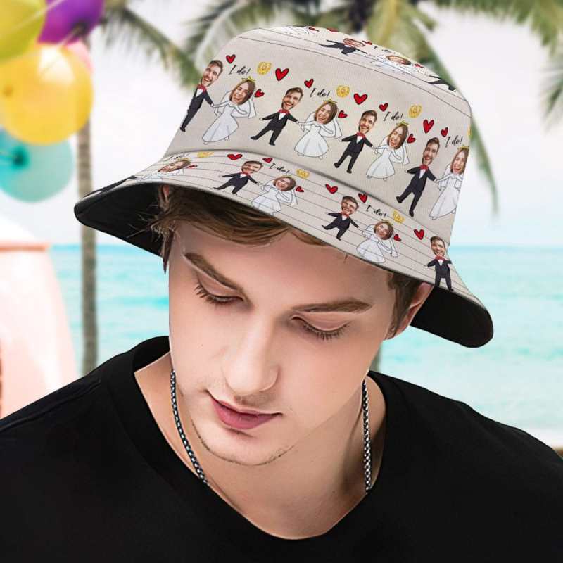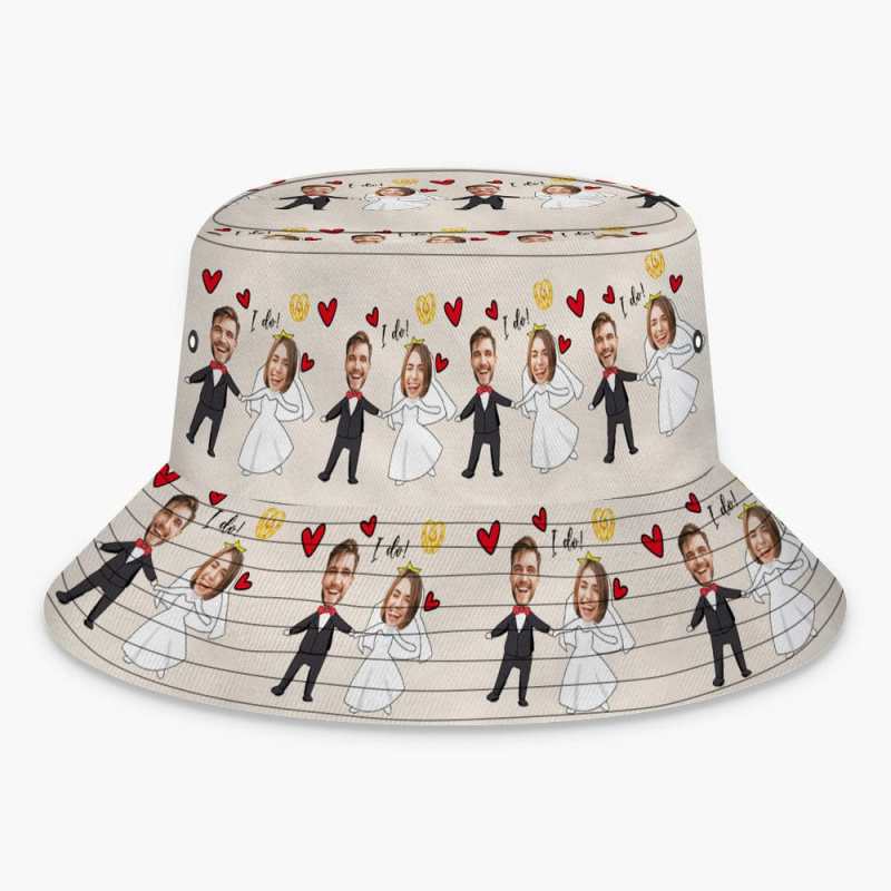 Custom Face Bucket Hat Personalized Couples Fisherman Cap Gifts for Wedding