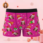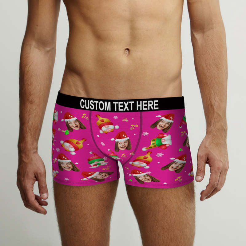 Custom Face Happy Gnomes Pink Christmas Boxer Briefs Personalized Christmas Gift