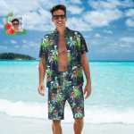 Custom Face Hawaiian Shirt And Beach Shorts Set Personalized Men's Photo Tropical Leaves Set Vacation Party Gift Team Gifts