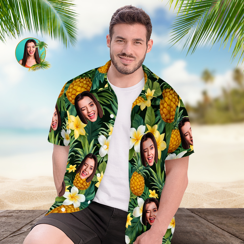 Custom Face Hawaiian Shirt Men's Pineapple Hawaiian Shirt Gift for Him