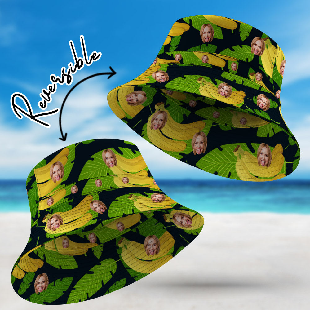 Custom Face Hawaiian Style Bucket Hat Double-Side-Wear Reversible Funny Fisherman Hat