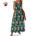 Custom Face Hawaiian Style Red Flowers Long Dress And Shirt Family Matching