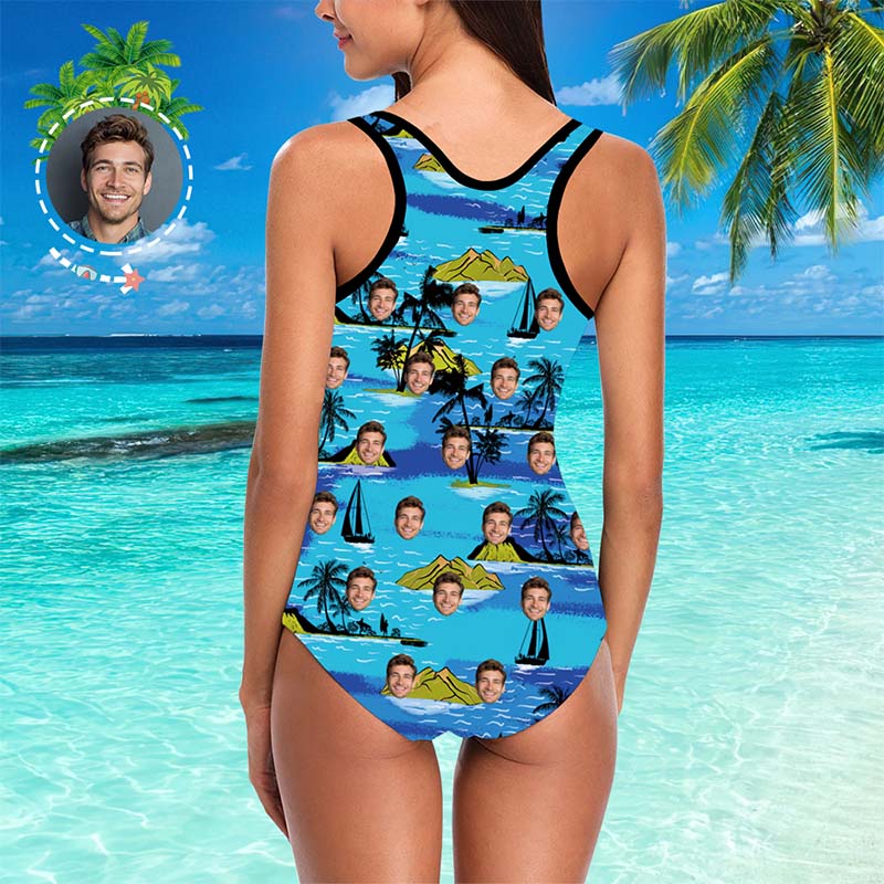 Custom Face Matching Couples Swimsuits Coconut Tree Couples Swimwear Gift for Lovers