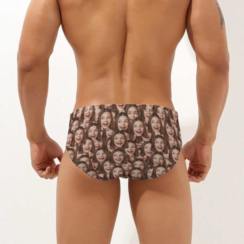 Custom Face Men's Swimming Trunks Personalized Face Mash Triangle Swim Briefs