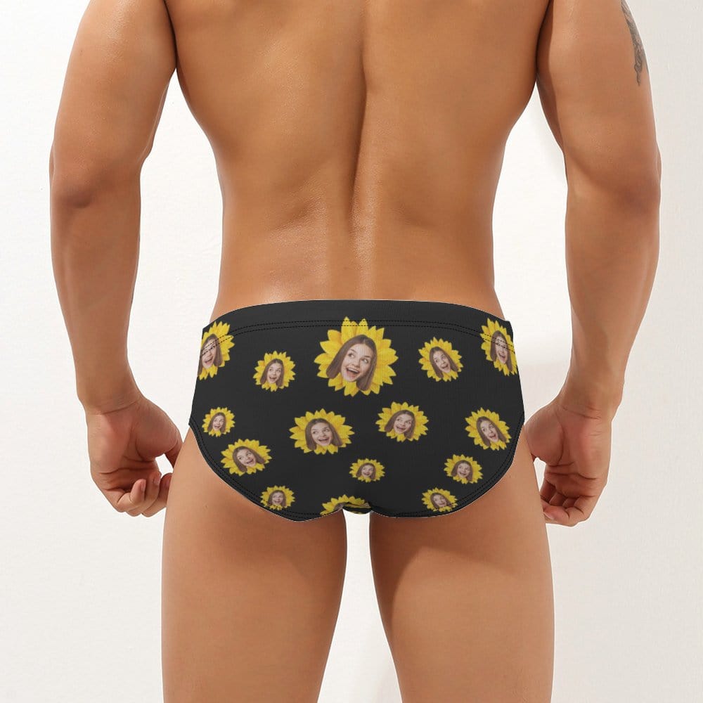 Custom Face Men's Swimming Trunks Personalized Sunflower Triangle Swim Briefs