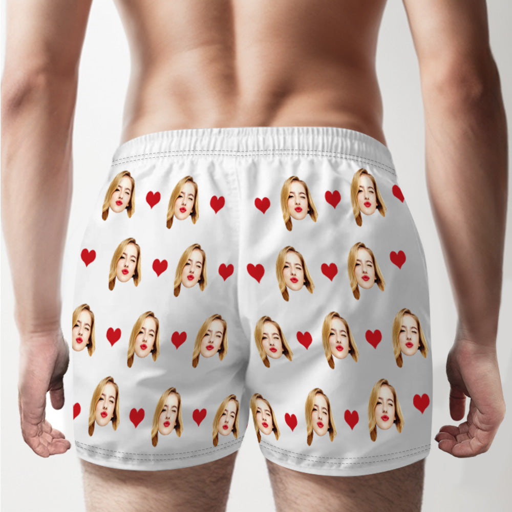 Custom Face Multicolor Boxer Shorts Love Hearts Personalized Photo Underwear Gift for Him