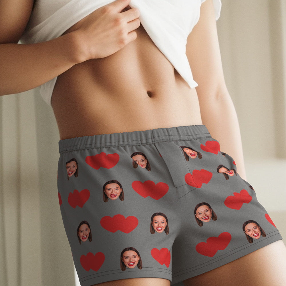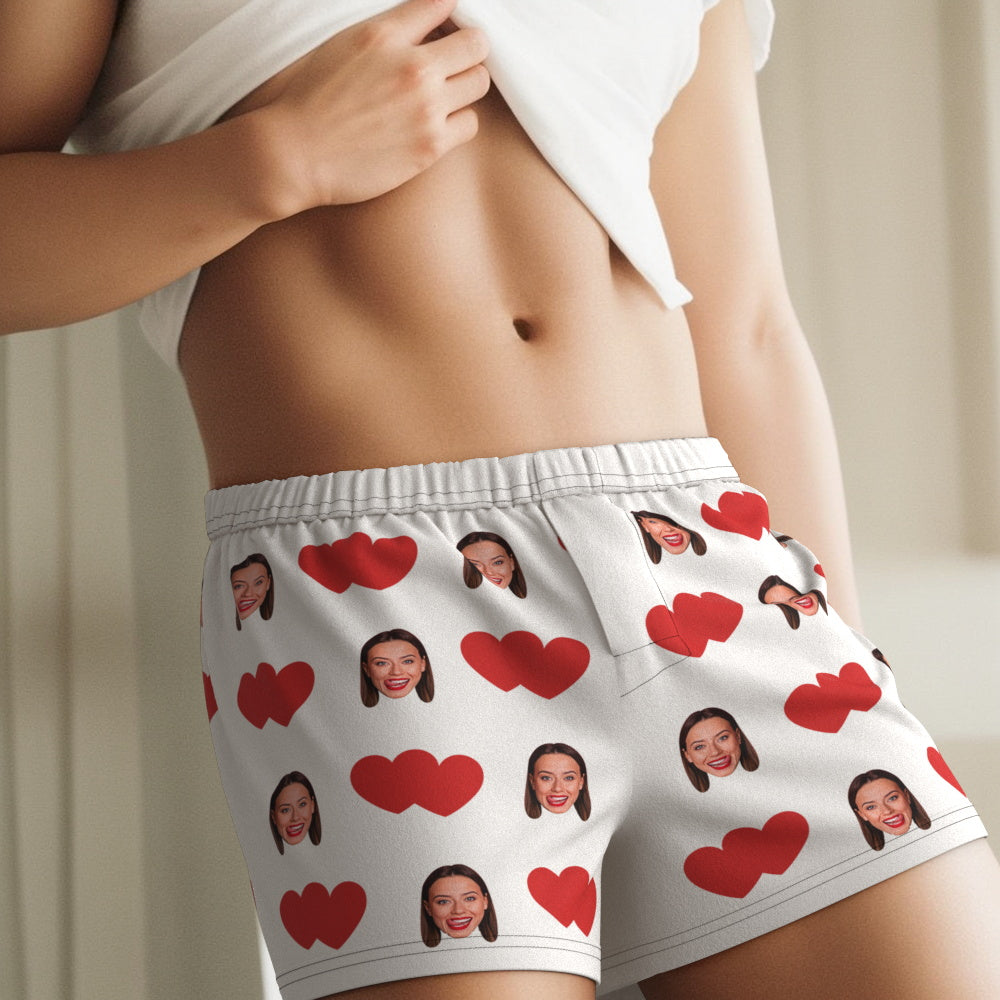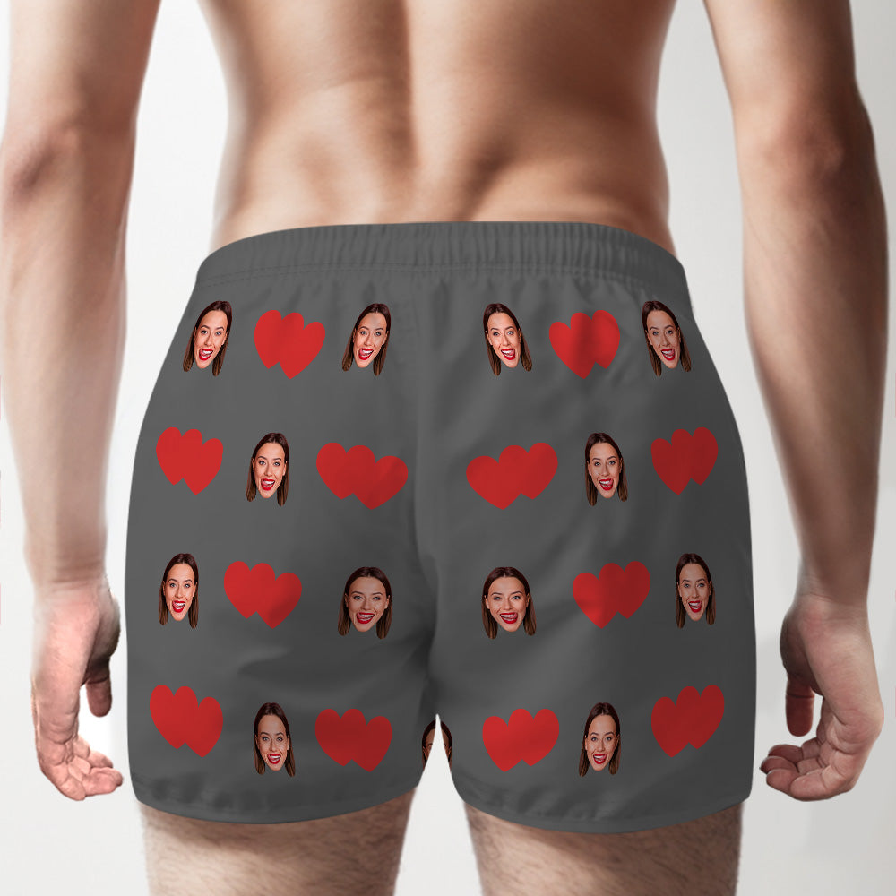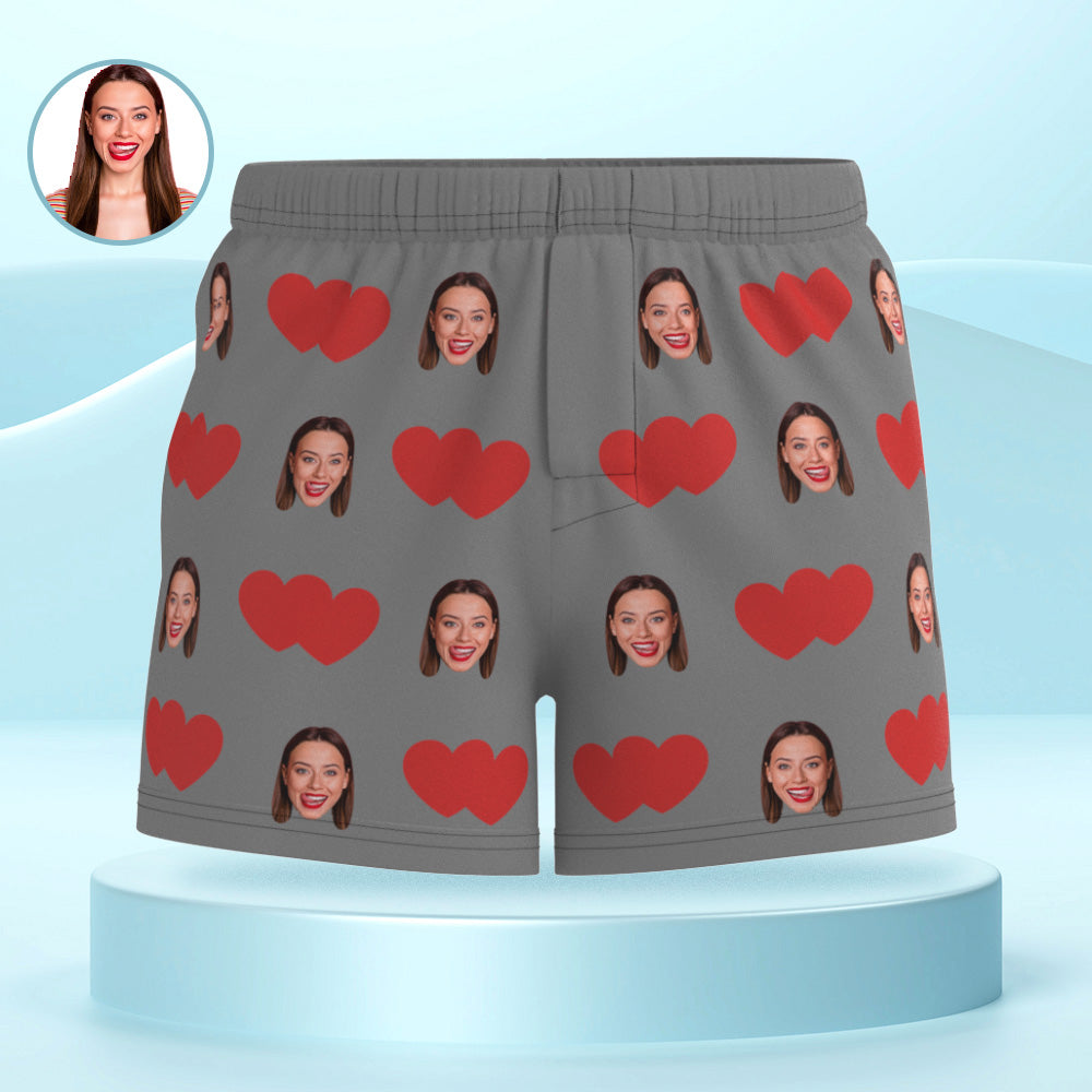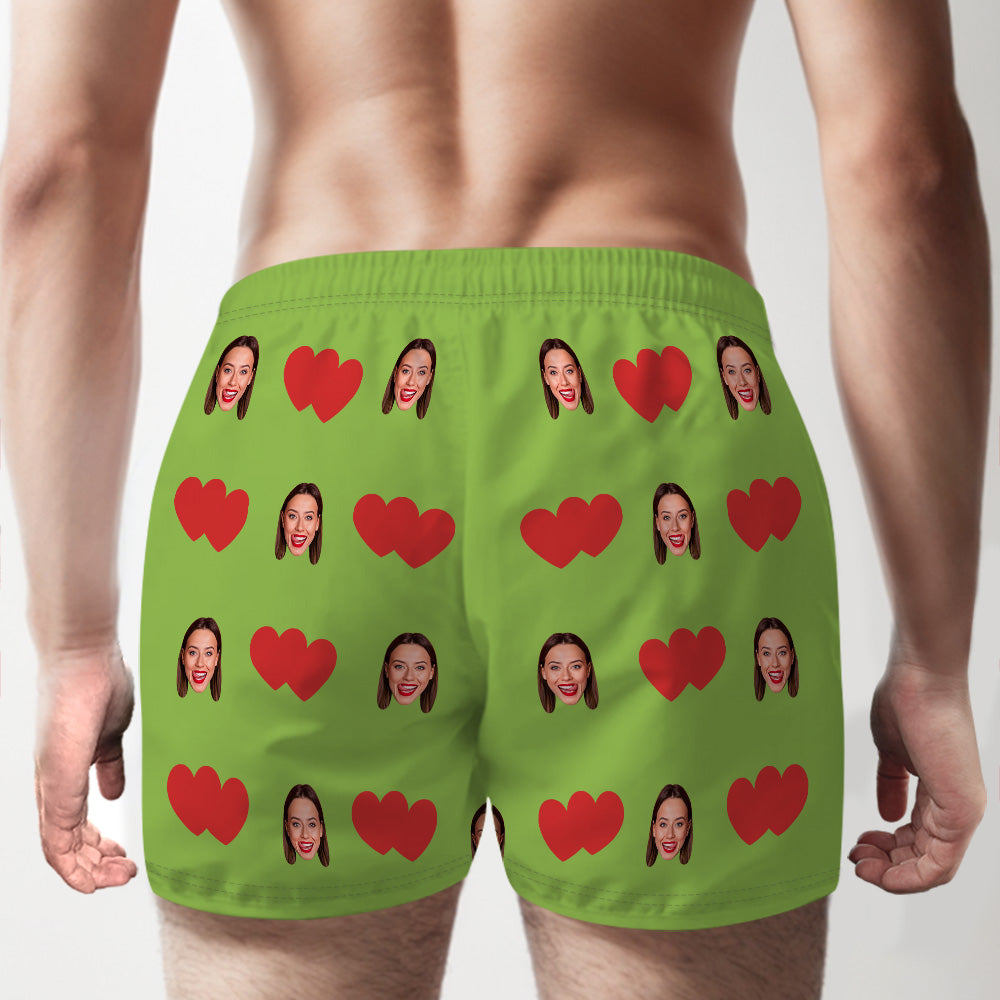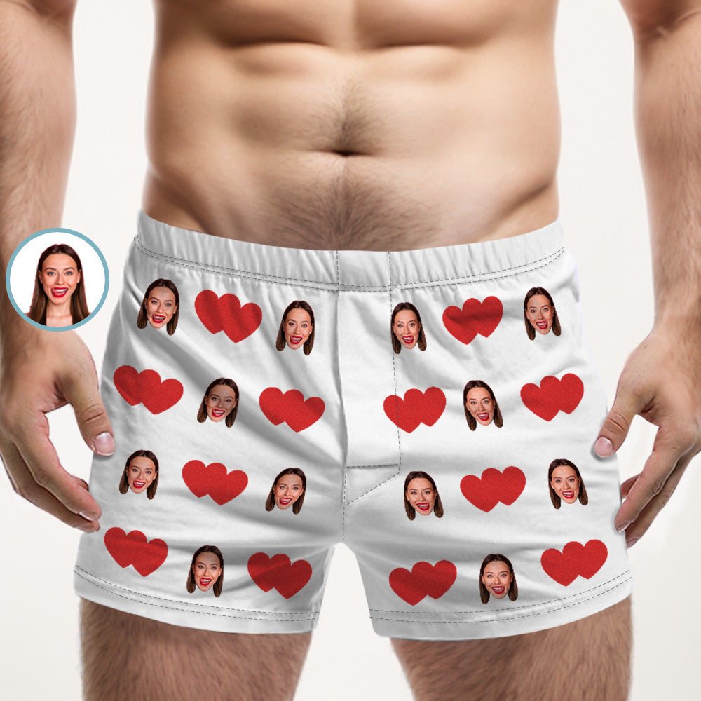 Custom Face Multicolor Boxer Shorts Red Heart Personalized Photo Underwear Gift for Him