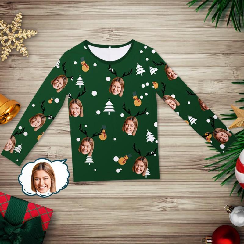 Custom Face Pajamas Set Christmas Elk Pjs Gifts for Family